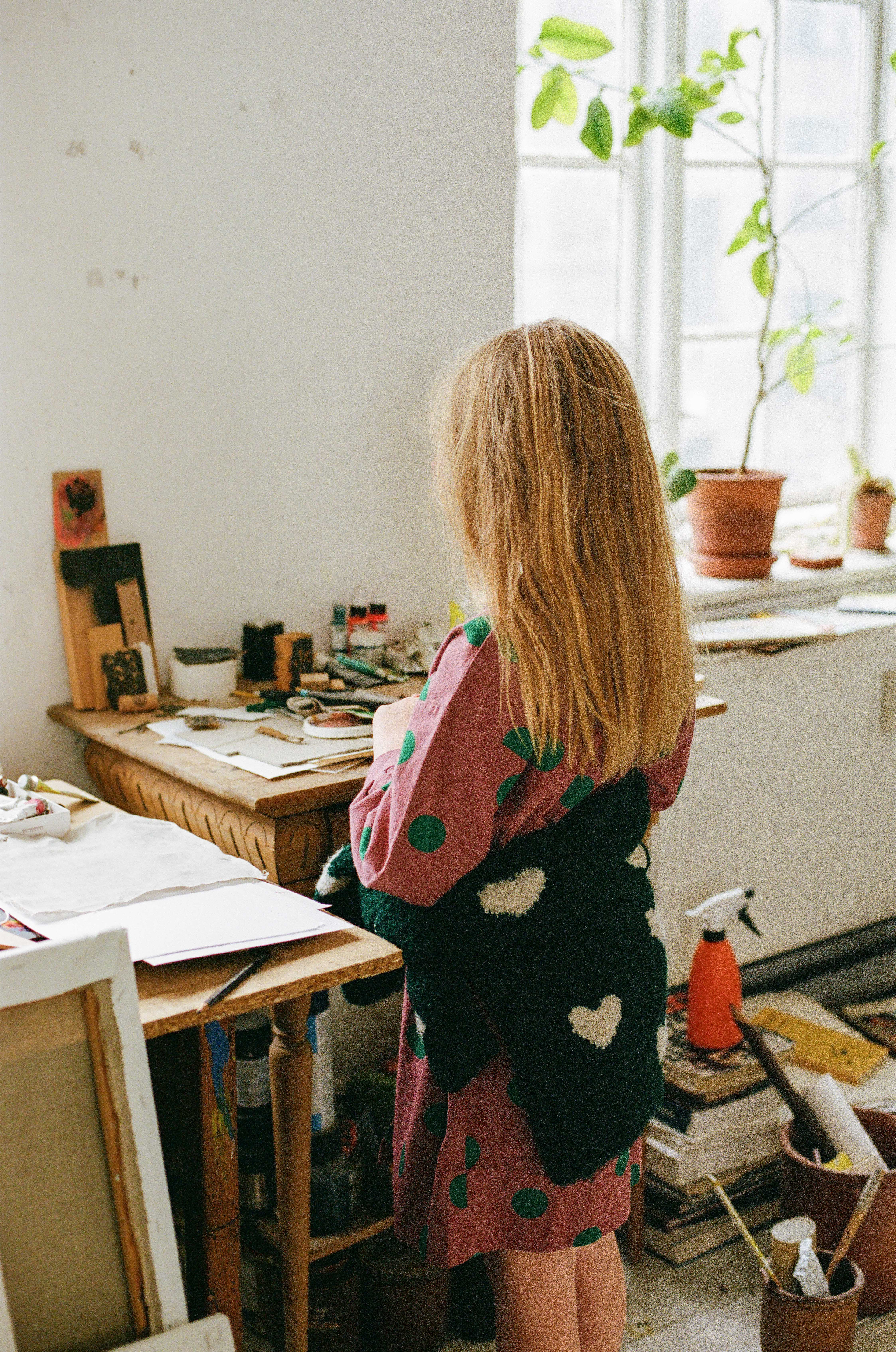 Lykke wears stripy sweater from The Campamento, pants from Bonmot and cardigan from The Animals Observatory.