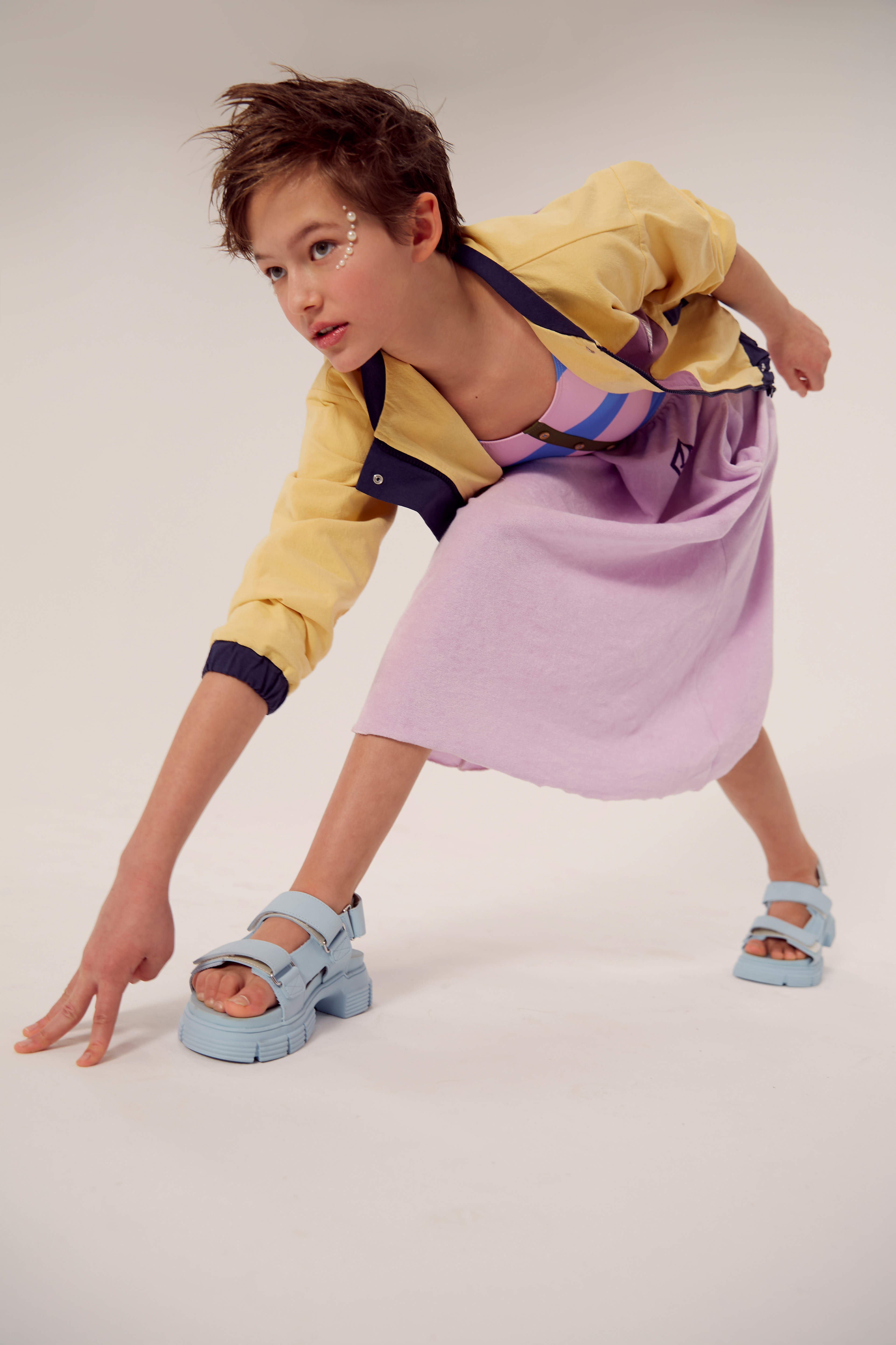 Photography: Priscilla Gragg with Apostrophe Reps | Styling: Maria Montané | Hair: Izumi Sato with 87 Artists | Makeup: Tomomi Gonzalez | Assistant: Darren Hall | Studio: 100 Sutton Studios | Retouching and Video Editing: Due Tres | Talent: Wyatt Gray with Generation, Luna Sasser with NYDK, Nolan Guthrie with Ohlsson