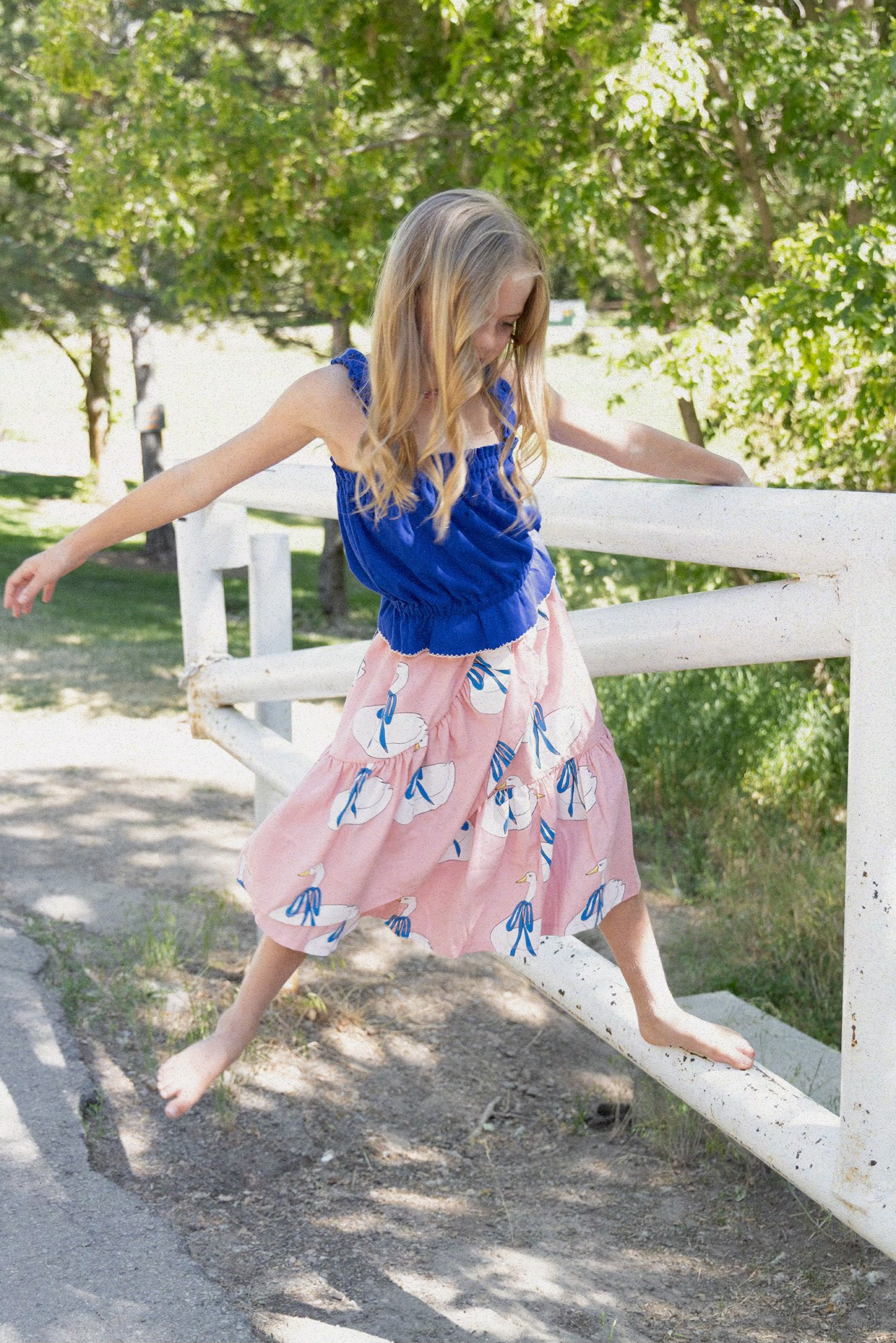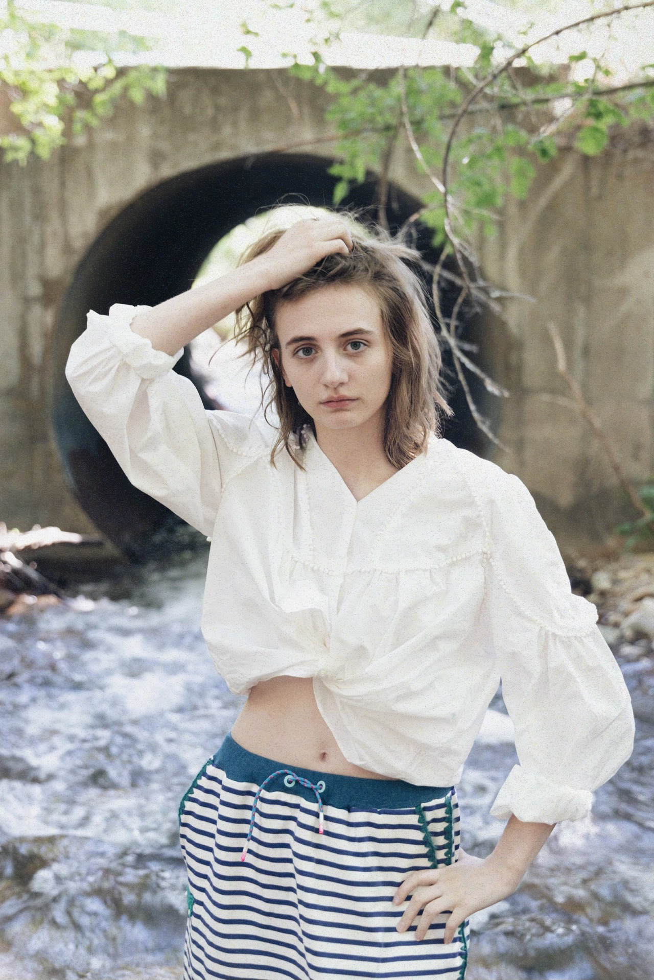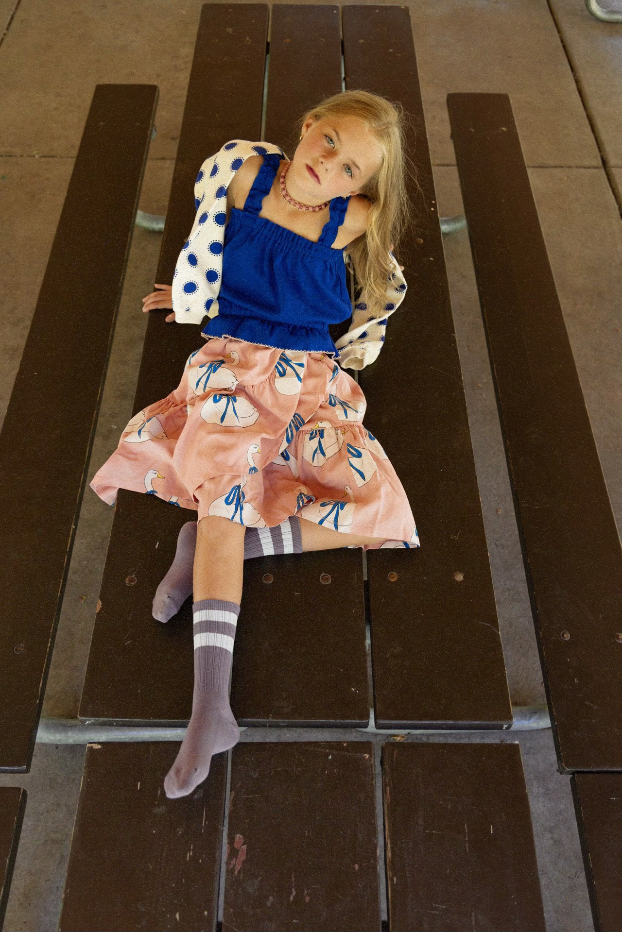 Bowe: Blouse Cou Cou Boston by Hello Simone, Sweatshirt Hello Simone, Skirt The Campamento, Socks Collegien