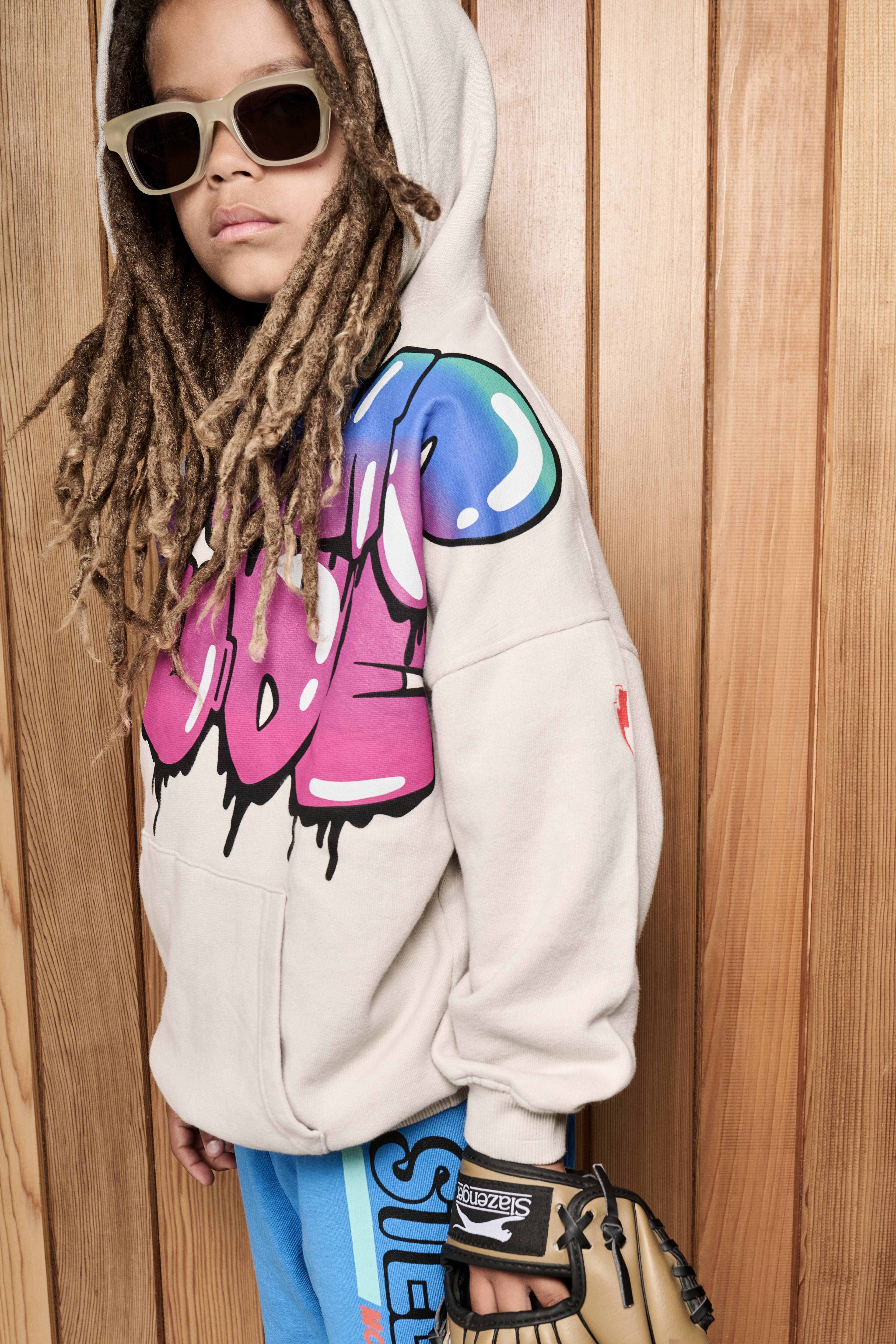 Hoodie, Scamp & Dude. Joggers, Stella McCartney Kids. Sunglasses, AKILA Kids. Super Mario socks, sold in a pack of 5, SockShop. Hightop trainers, Stella McCartney KIds