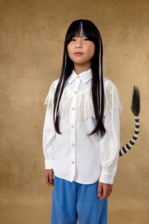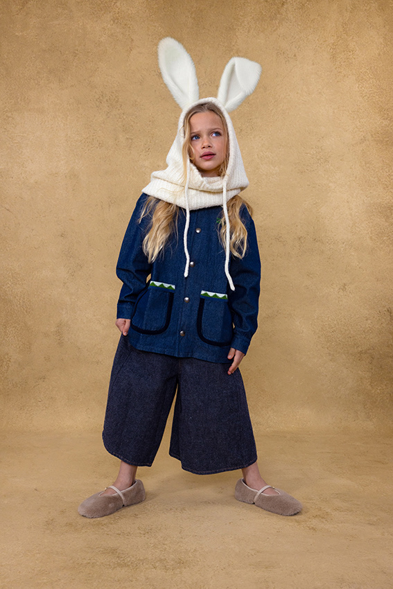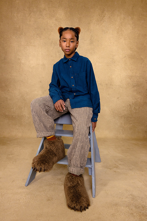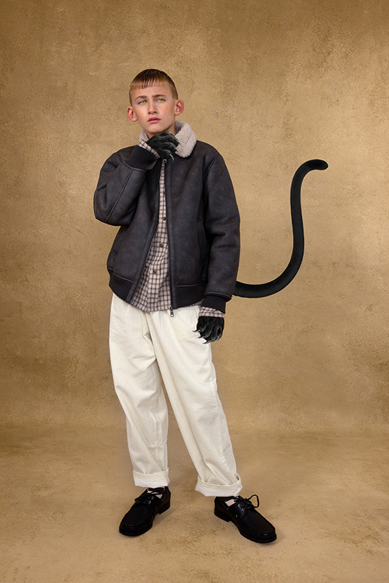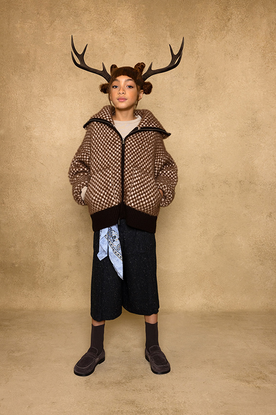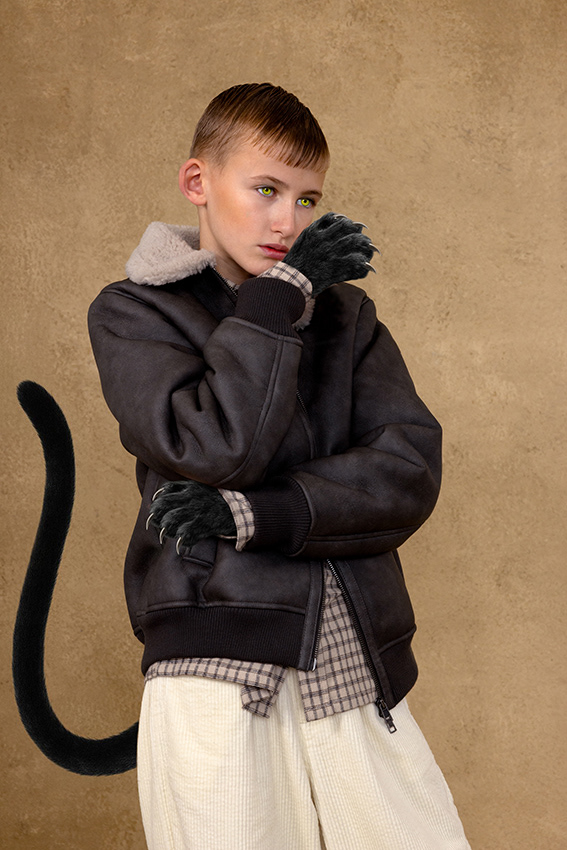 In this story, the magic hides in the details. A flick of a tail, a quiet paw, a pair of ears peeking through - each child carries a whisper of an animal within. These are not creatures from fairy tales, but kids caught between play and daydream; part real, part imagination. It's not a costume, but a feeling that's slipped out - the wild part of who they are, impossible to hold back. Here, fashion doesn't dress up as fantasy - it reveals it. A quiet blur between the real and the imagined, where childhood's truest form is a little wild.