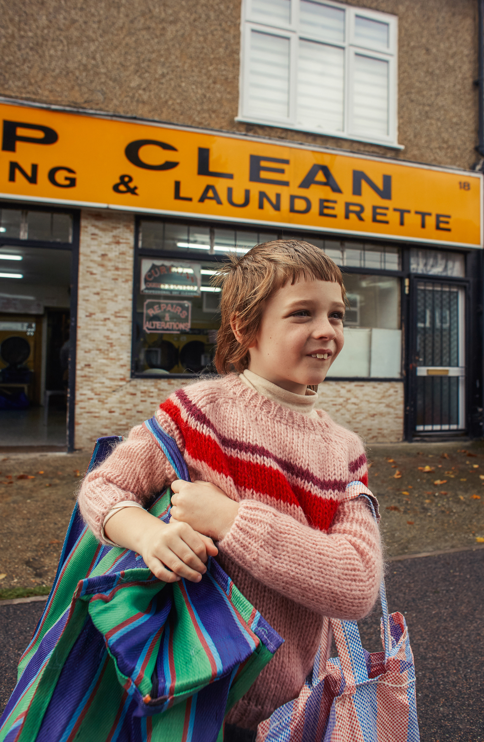 To go with the theme of the brand we shot the kids in a vintage shop, doing the laundry at the launderette, messing about on bikes etc. We mixed in vintage pieces and some sustainable foot wear from Young Soles and Zig & Star.