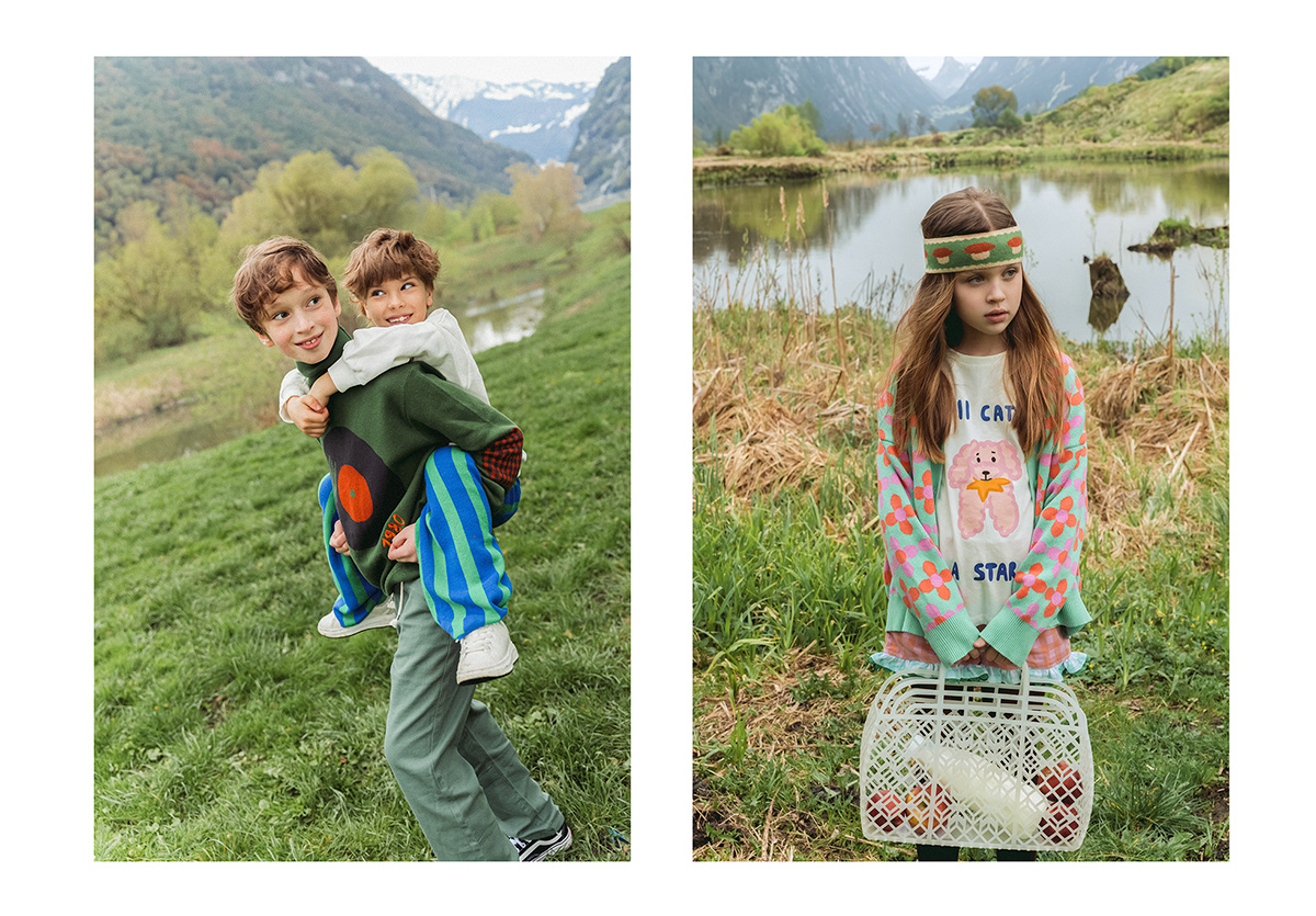 Maya: cardigan – Choochoo, Shorts – Stella McCartney, tights – Conte, T-shirt – Choochoo