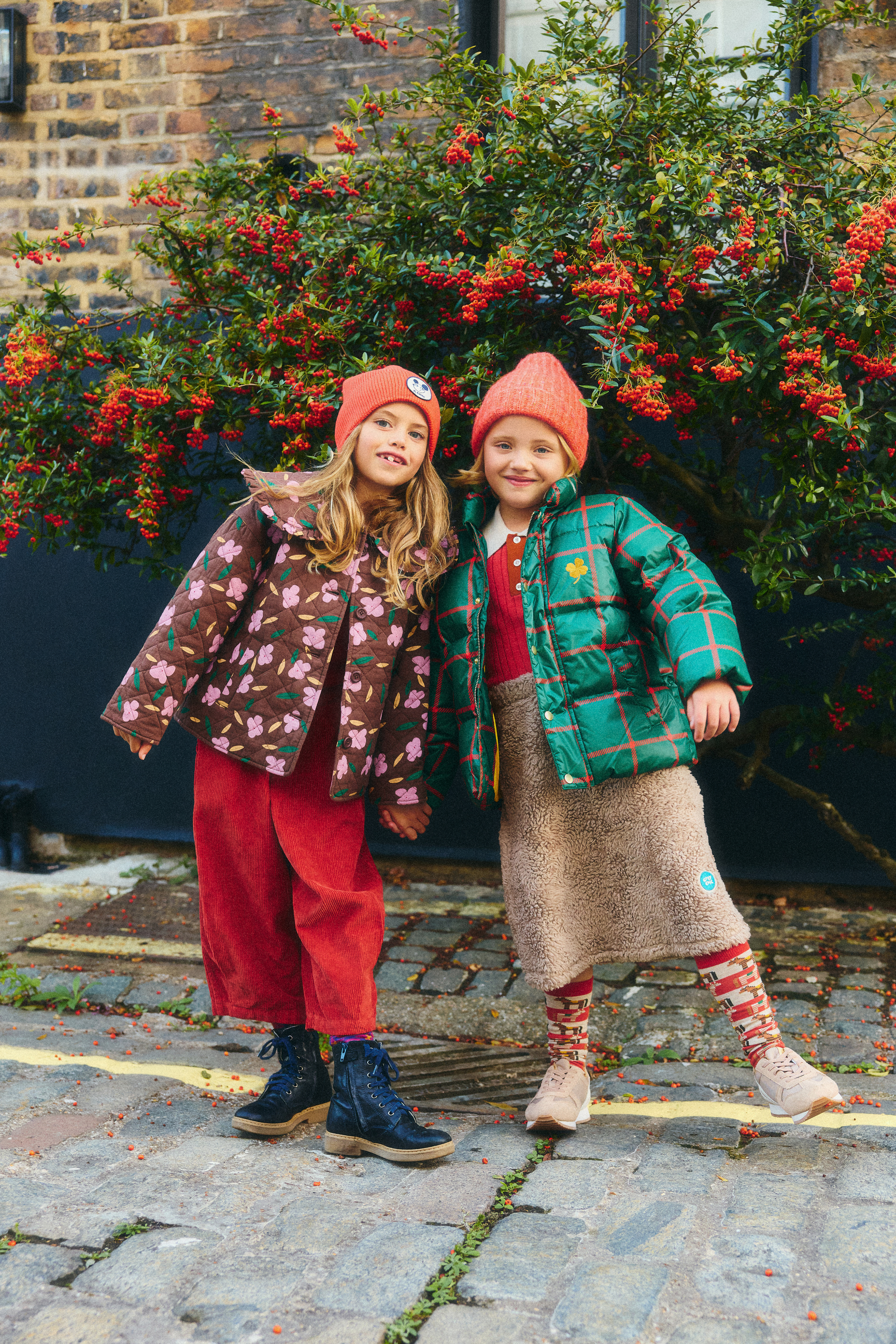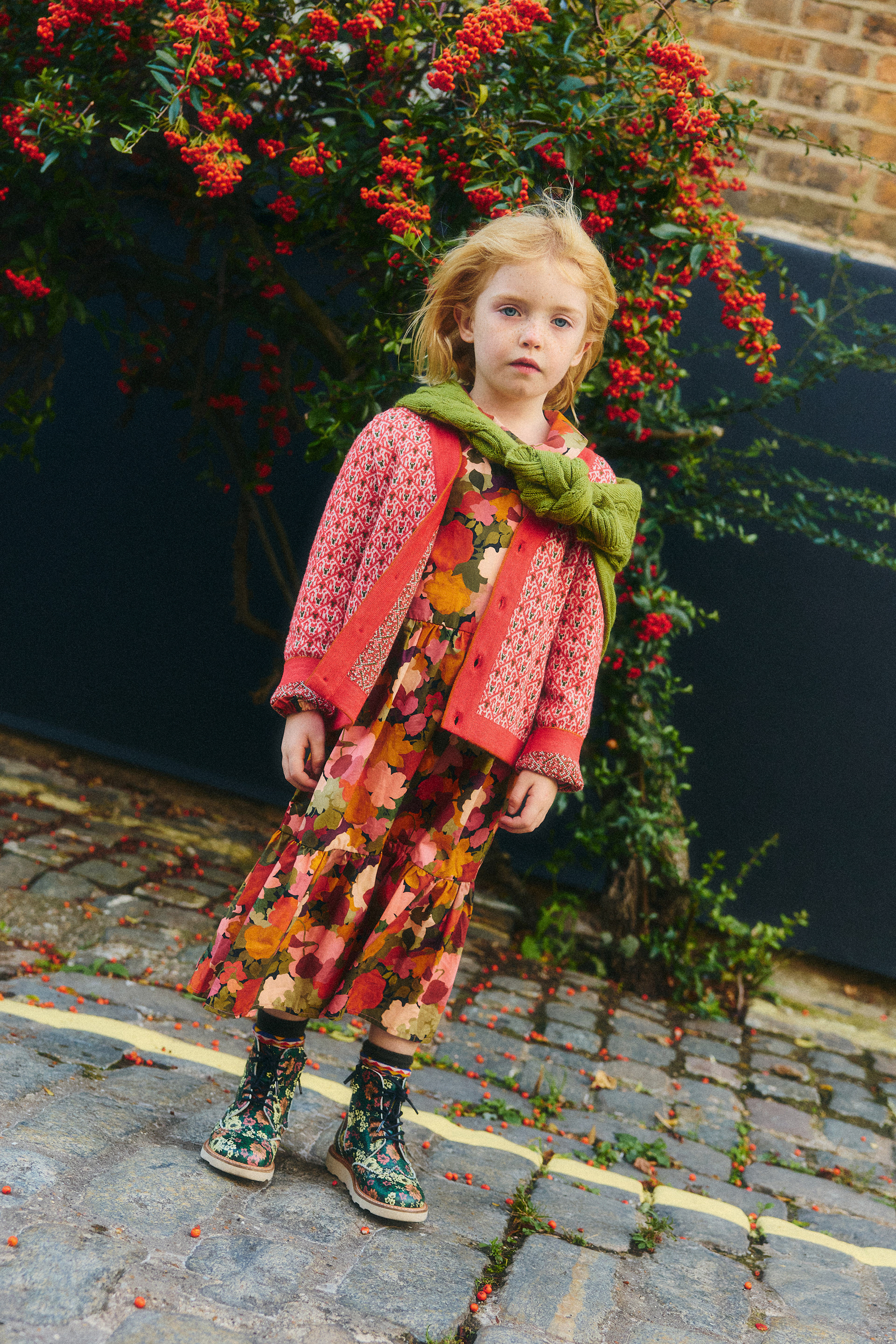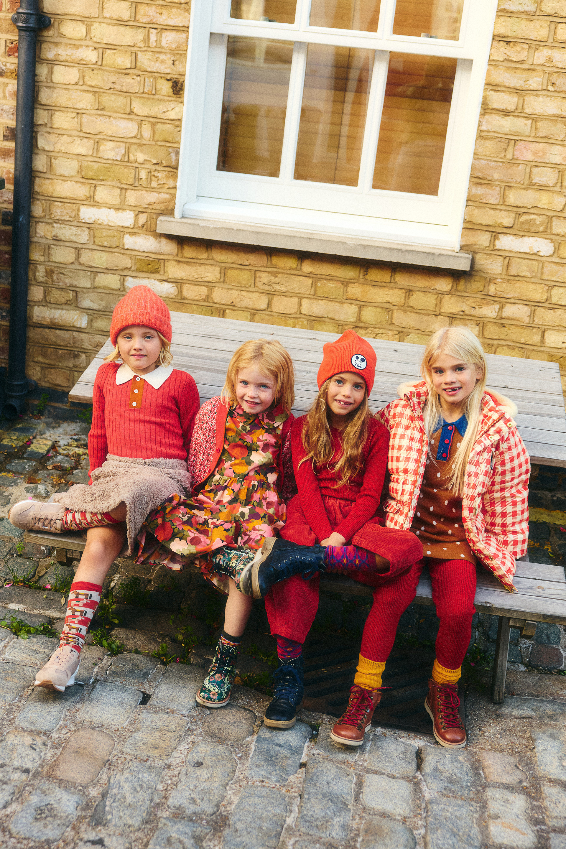 Lyra: Coat- Mini Rodini, Dress- Paade Mode, Tights- Mabli, Boots- Young Soles, Socks- Stylist's ownChloe: Dress- Paade Mode, Cardigan- Paade Mode, Green cardigan- Paade Mode, Socks- Mabli, Boots- Stylist's own