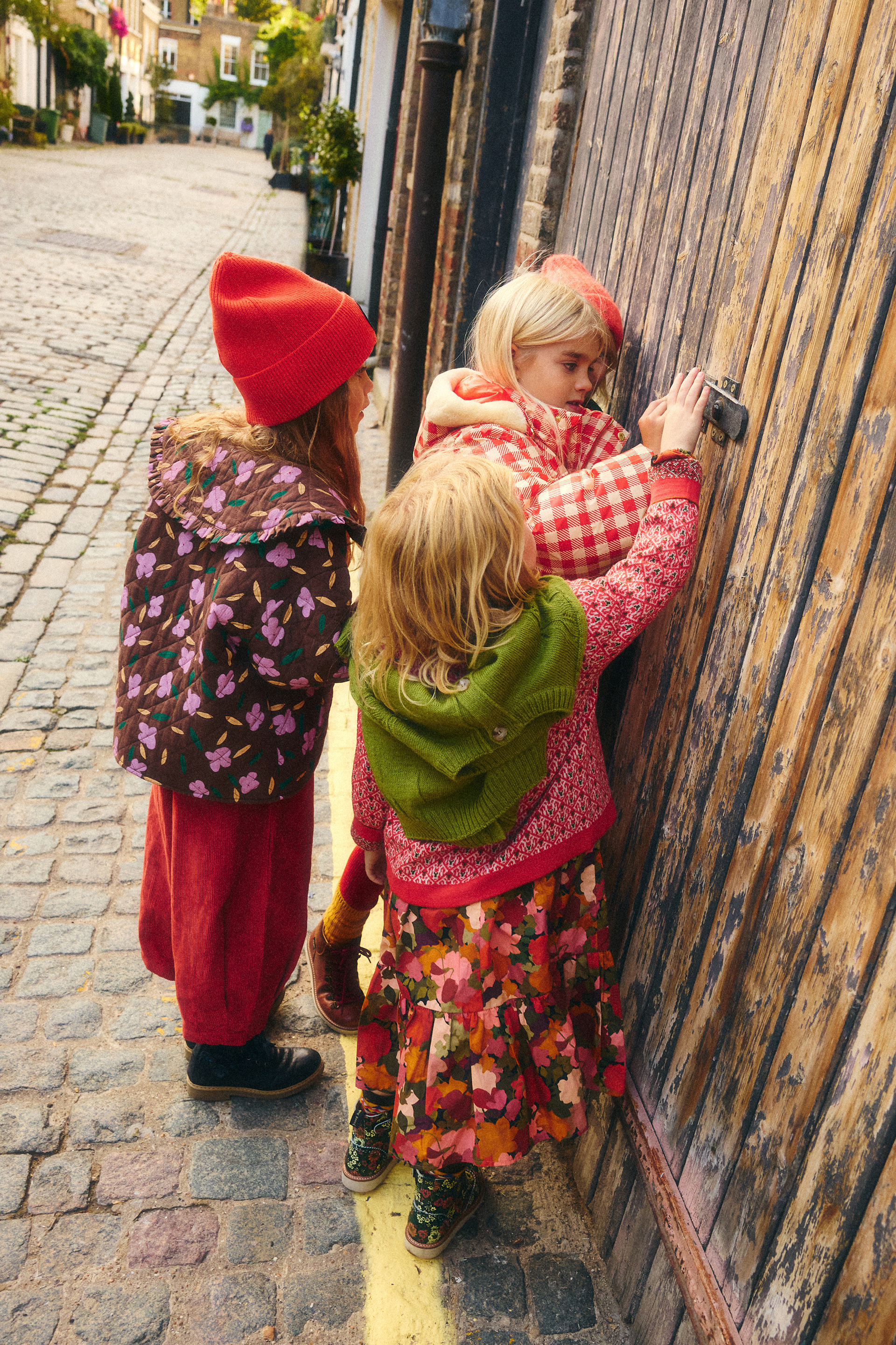 Edie: Jacket, Skirt, Sweater -Mabli, Vest- Mini Rodini, Socks- La Coqueta, Boots- Stylist's own