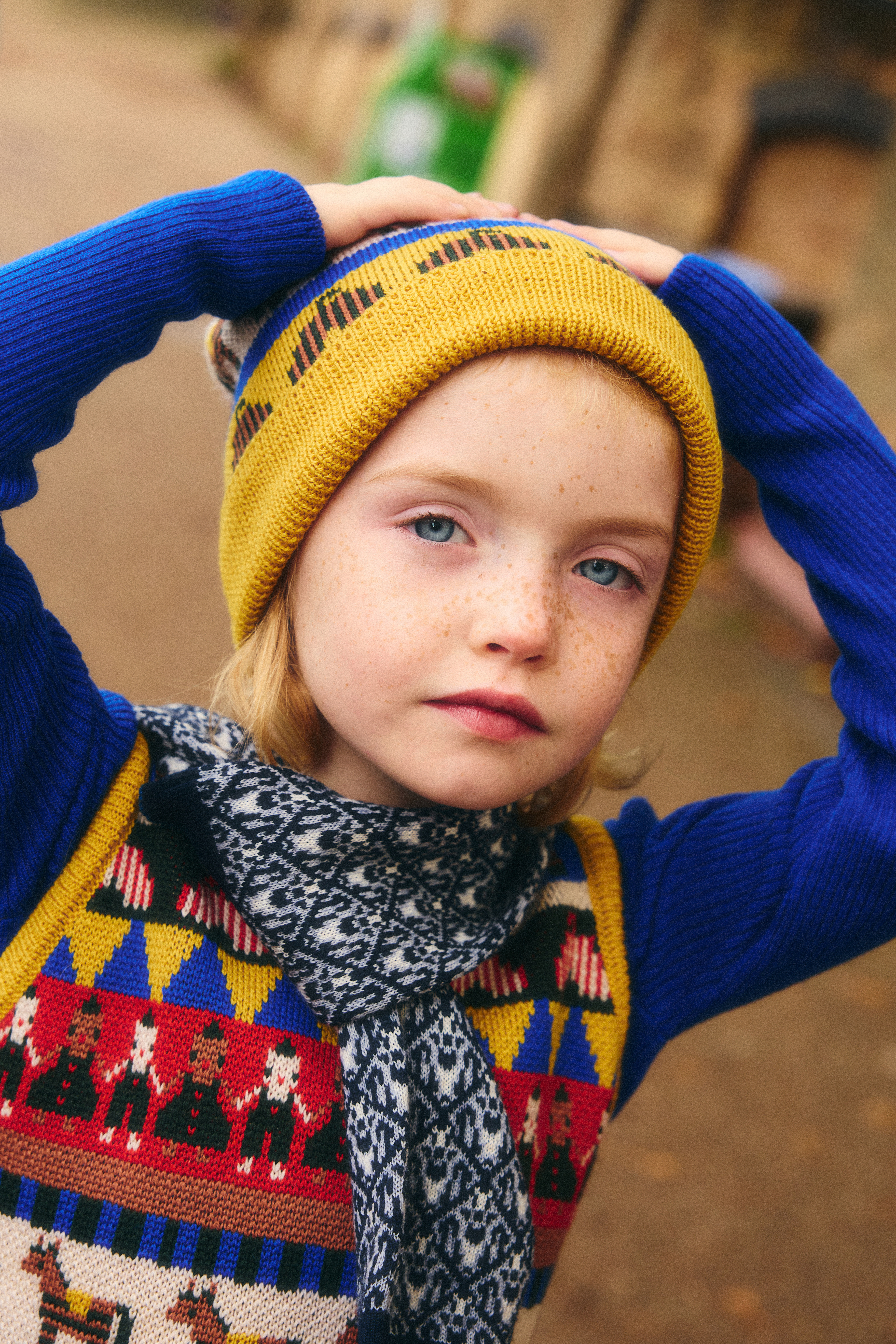 Zhasmin: Jacket- Jelly Mallow, Sweater- Mabli, Trousers- Mabli, Hat- Mini Rodini, Boots- Stylist's own
