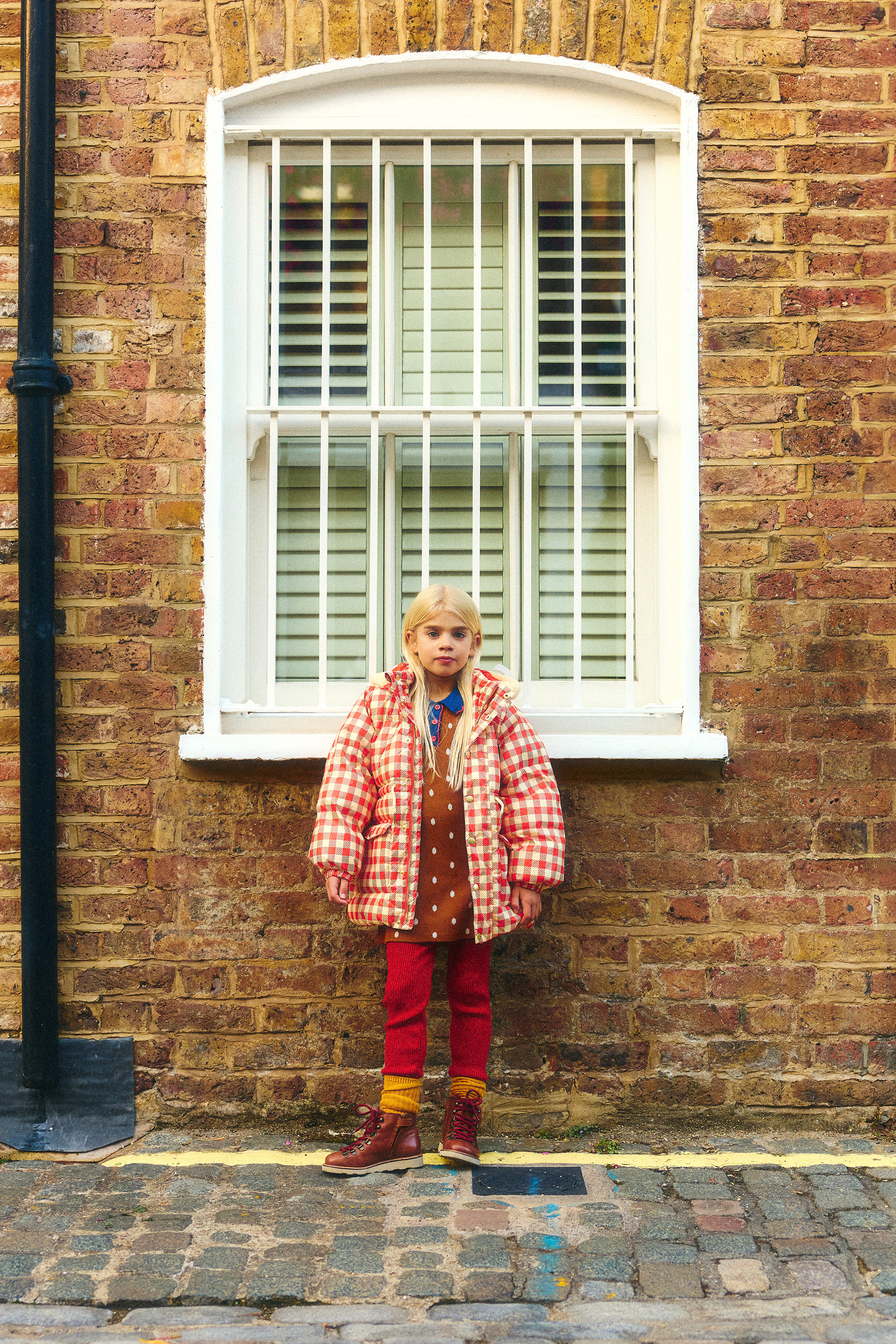 Lyra: Coat- Mini Rodini, Dress- Paade Mode, Tights- Mabli, Boots- Young Soles Socks- Stylist's own