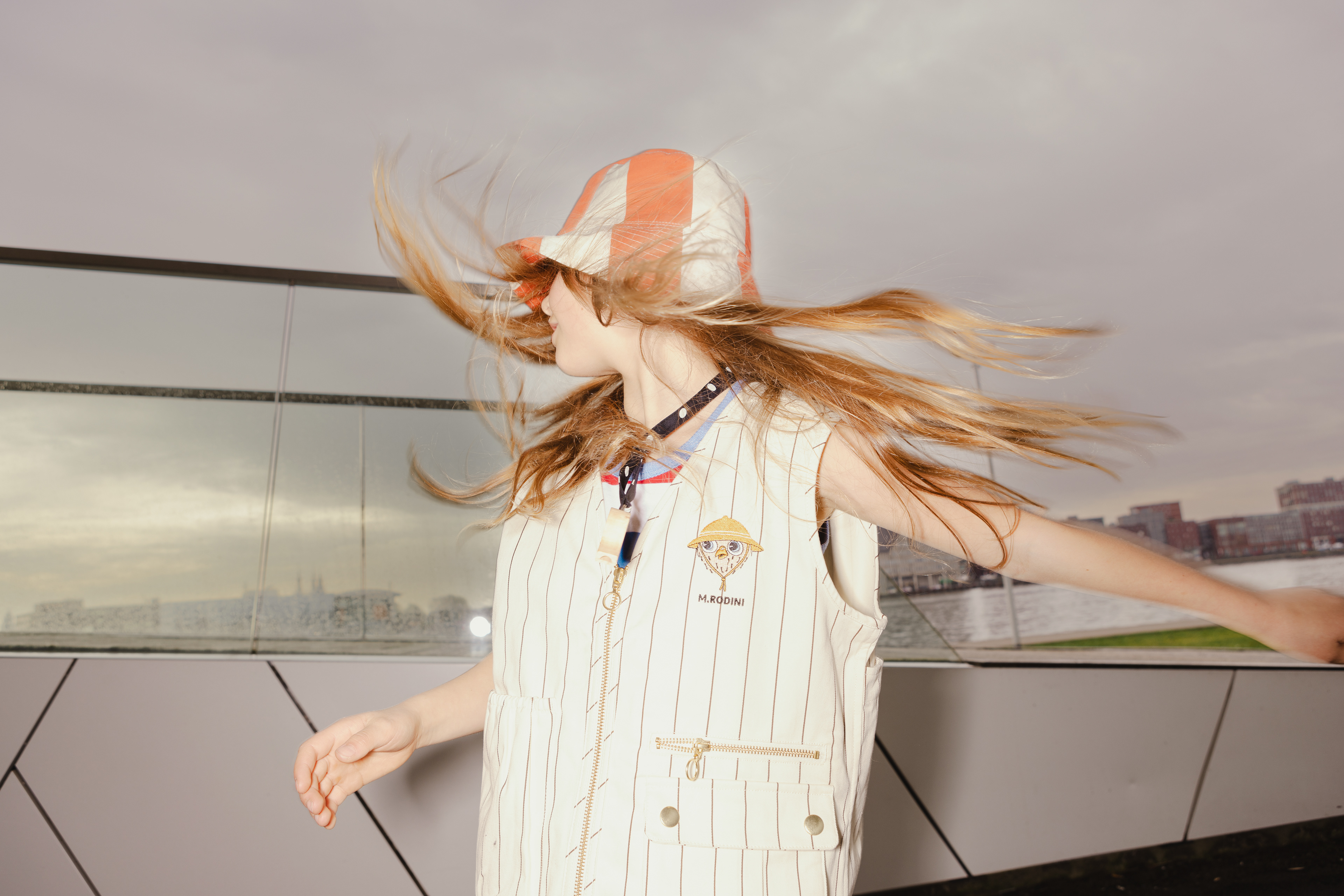 Luna: Buckethat Bobo Choses, Scarf Gray Label, Vest Mini Rodini, Top H&M, Short Reiss, Socks Zara, Shoes Dr. Martens
