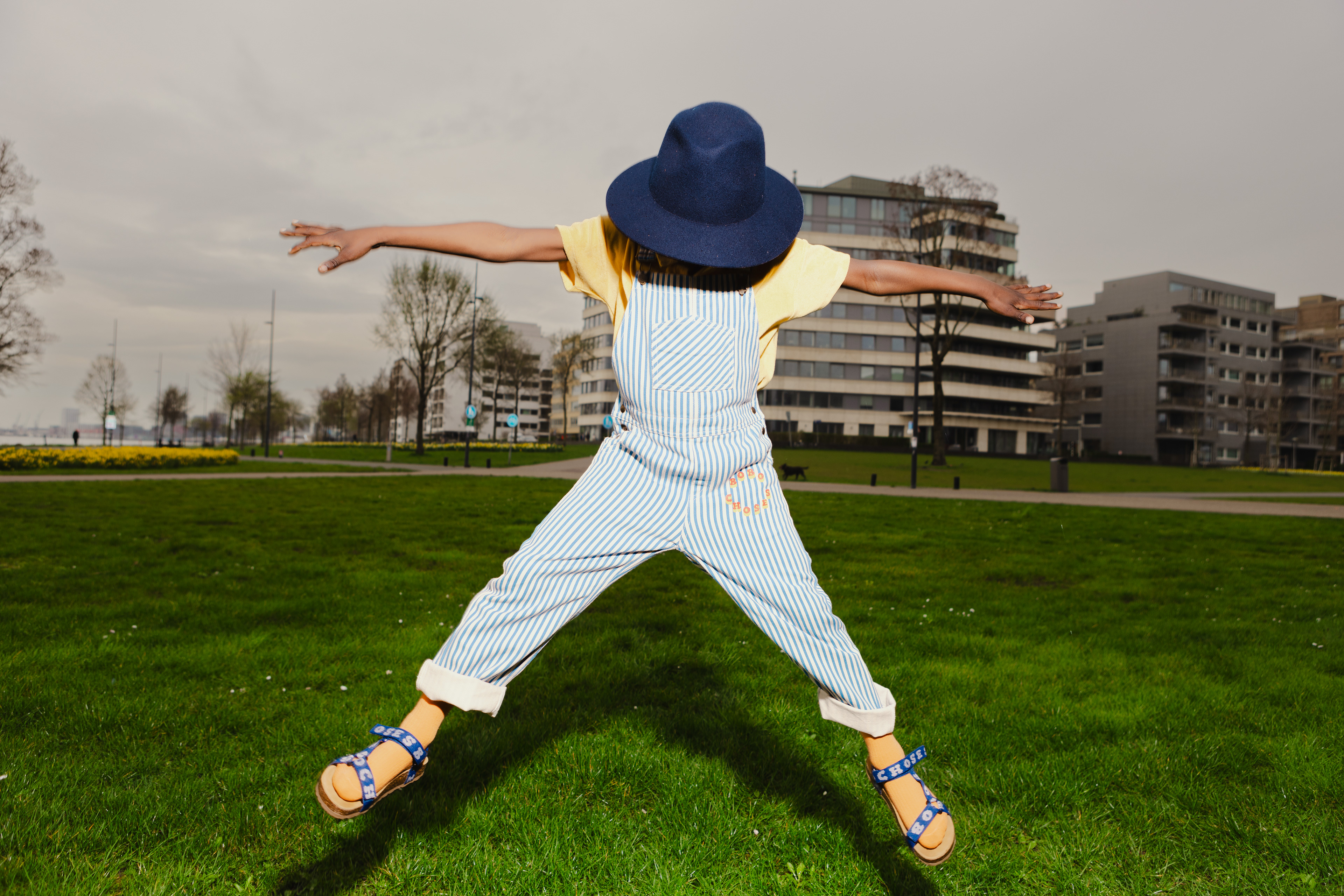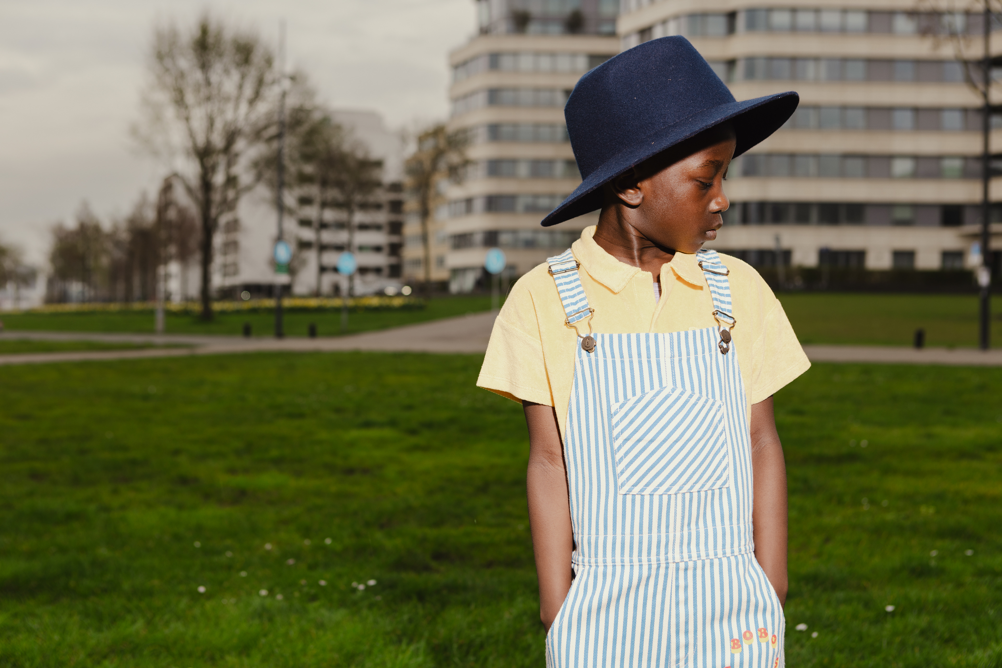 Zion: Hat Bronte, Shirt Emile et Ida, Overall Bobo Choses, Socks Arket, Sandals Bobo Choses