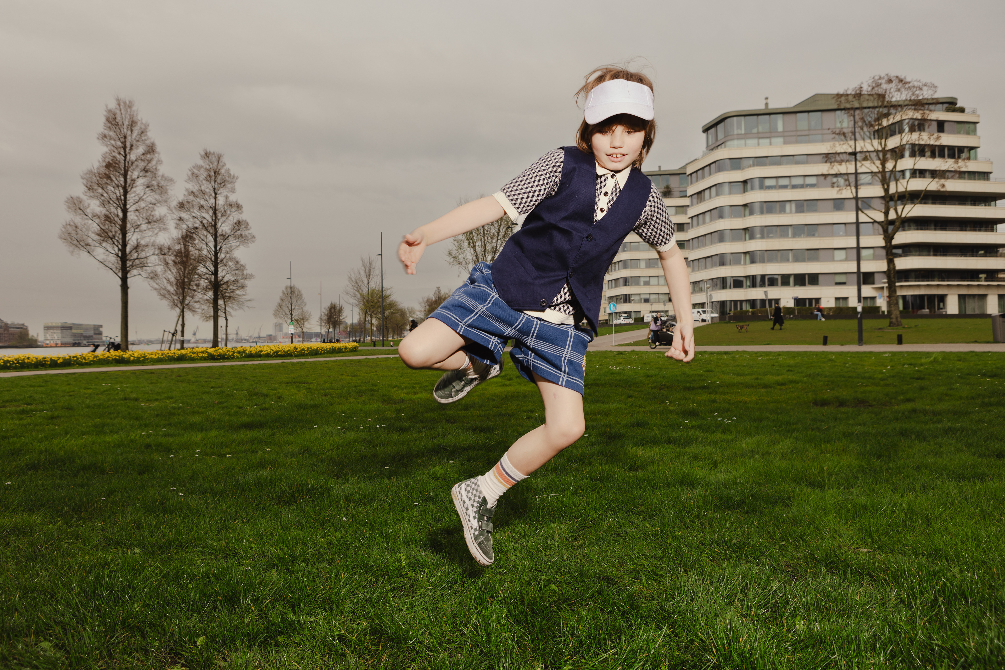 Left, Zion: Hat Tommy Hilfiger, Blazer WE Fashion, Top Minoti, Short Bobo Choses, Socks H&M, Shoes Models own