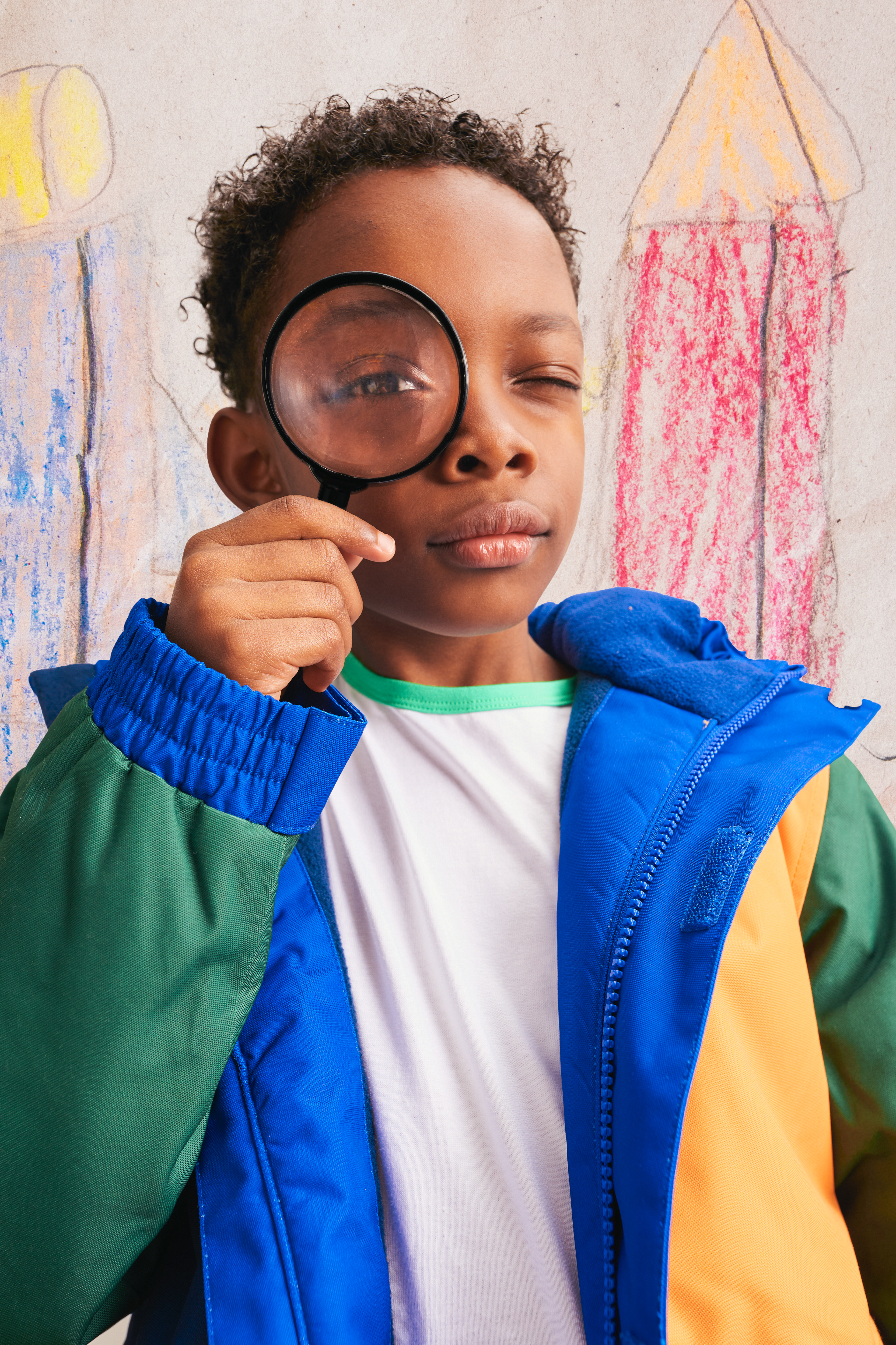 Mason: T-shirt with green trim by Dotty Dungarees, jacket by Bobo Choses