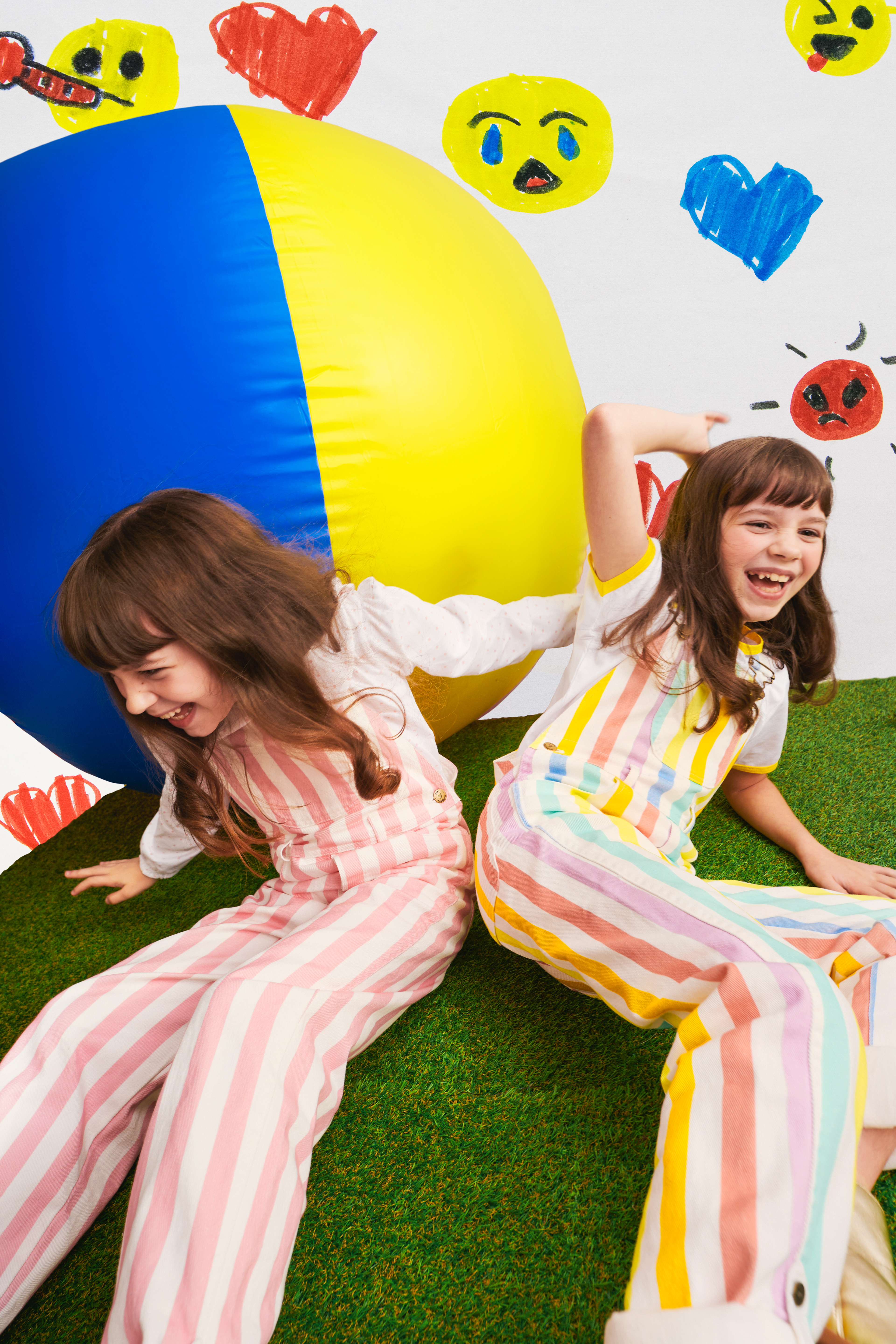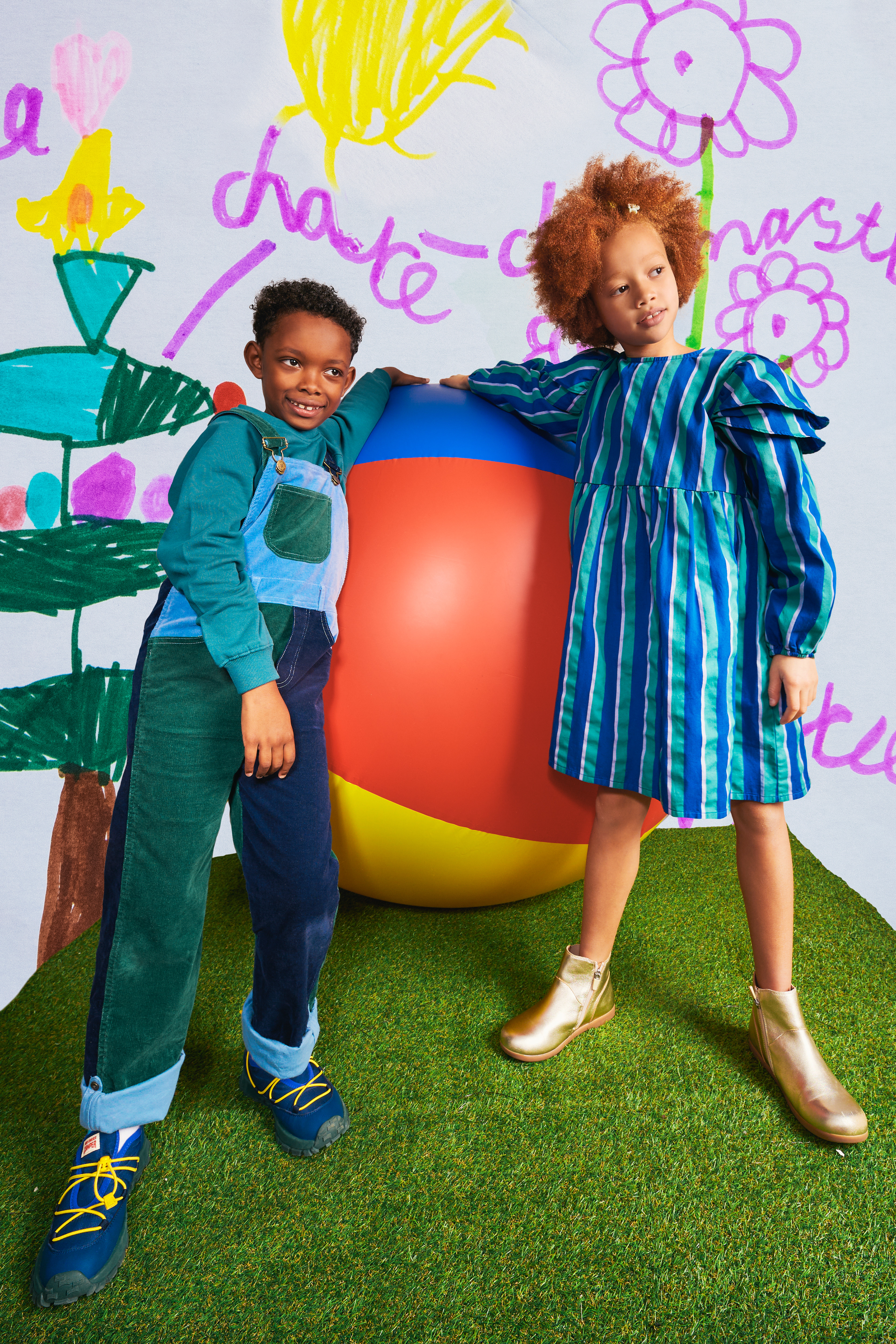 Marley: striped dress by Bobo Choses, gold leather boots by Zig and Star,