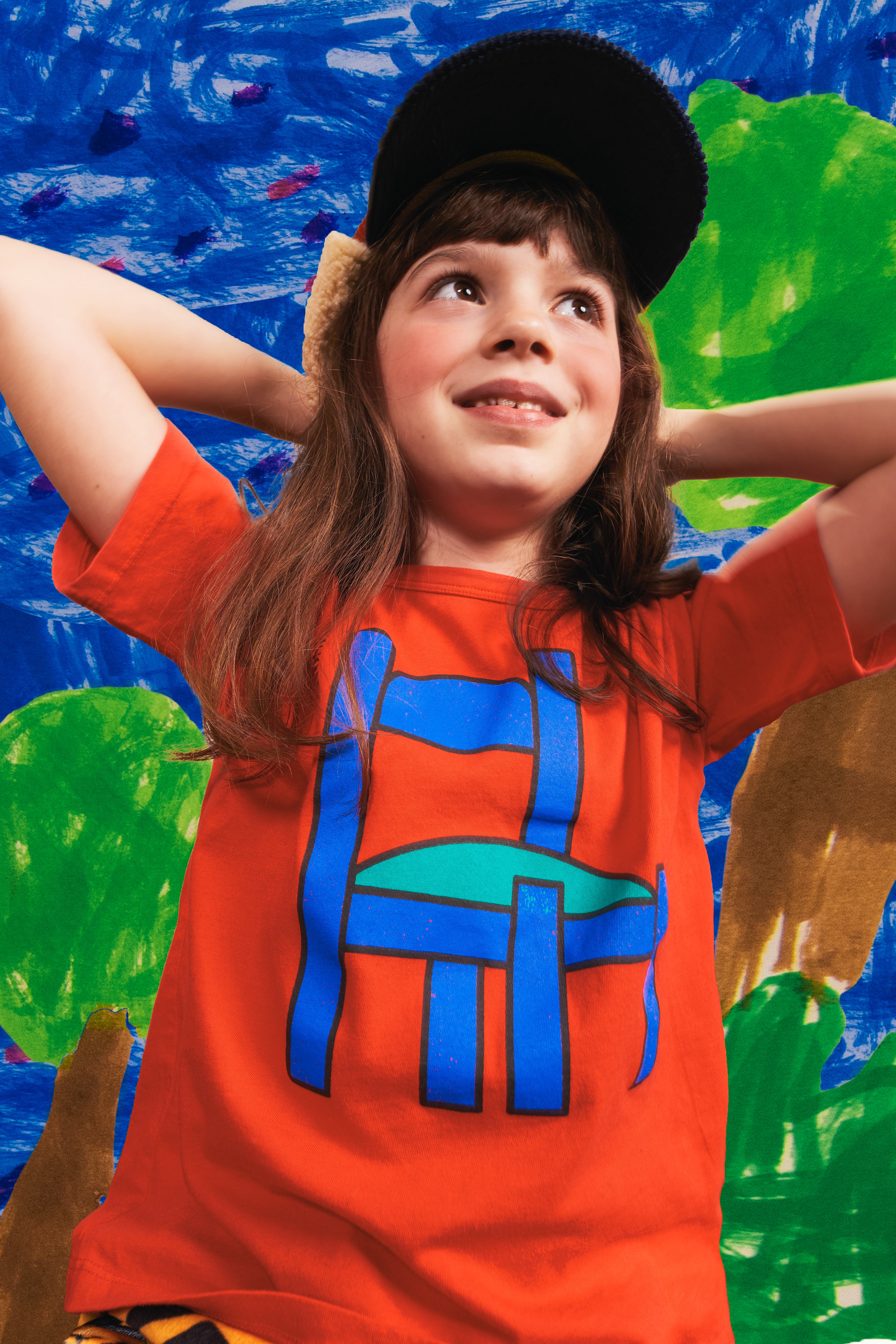 Evelyn: chair print T-shirt and corduroy by Bobo Choses