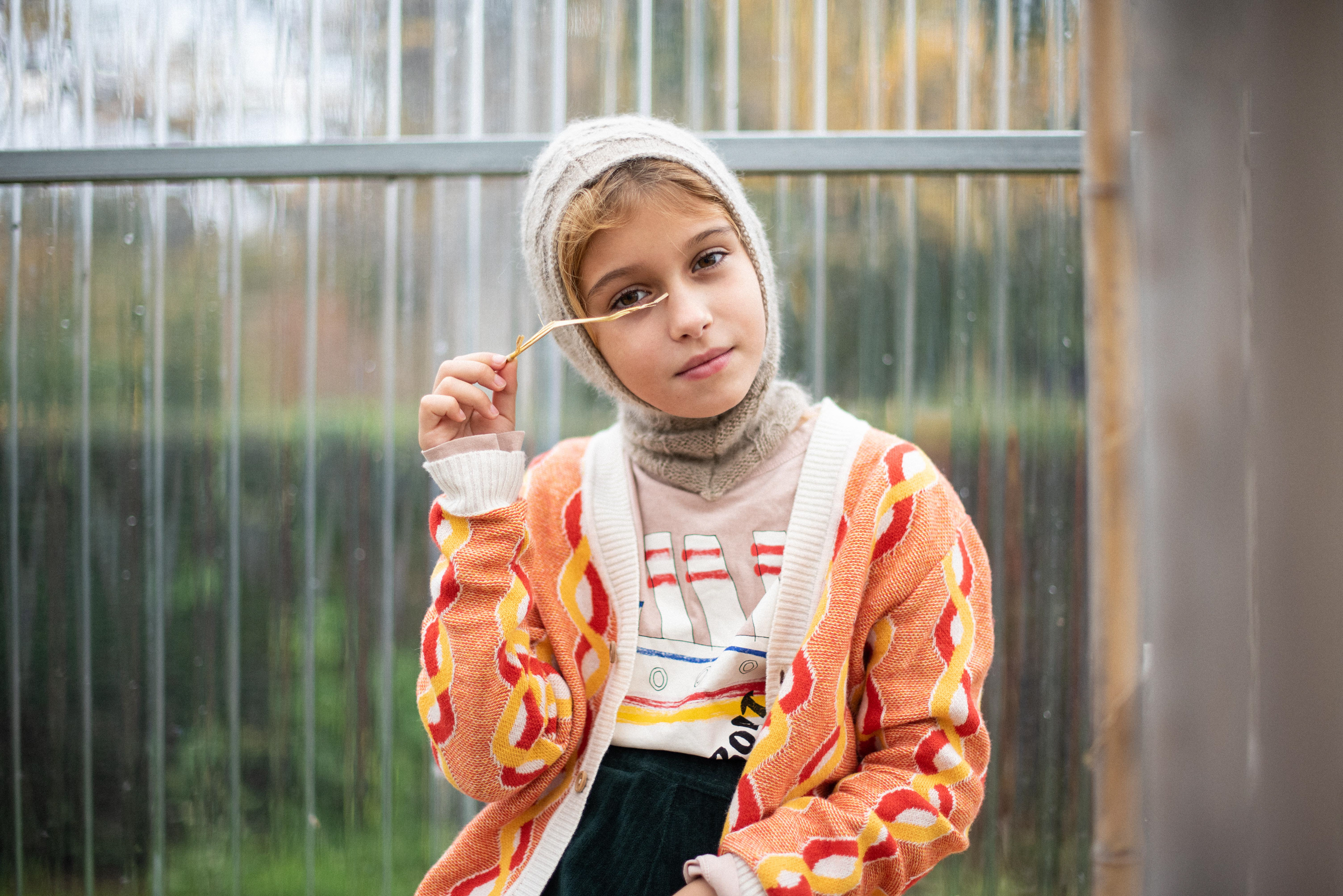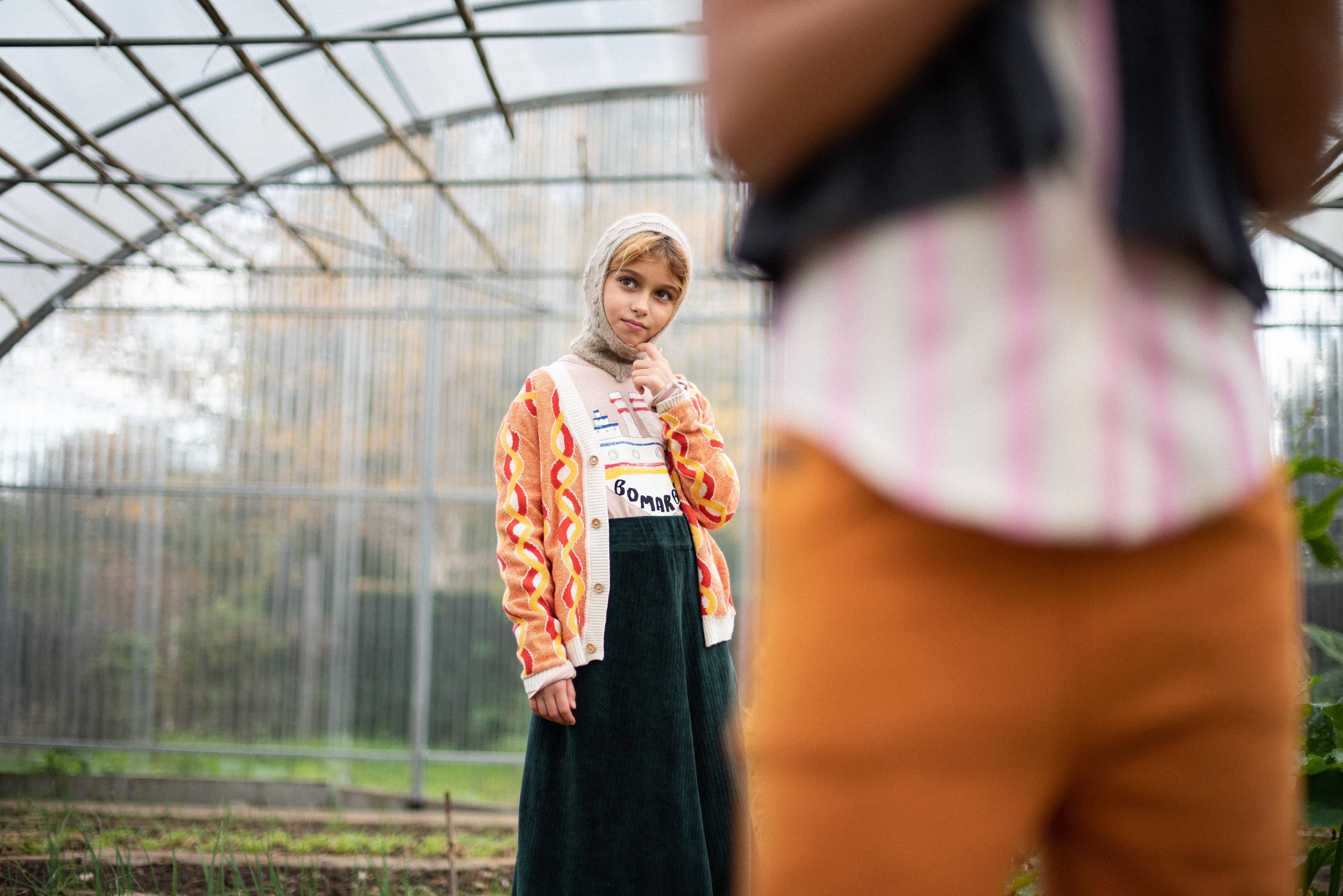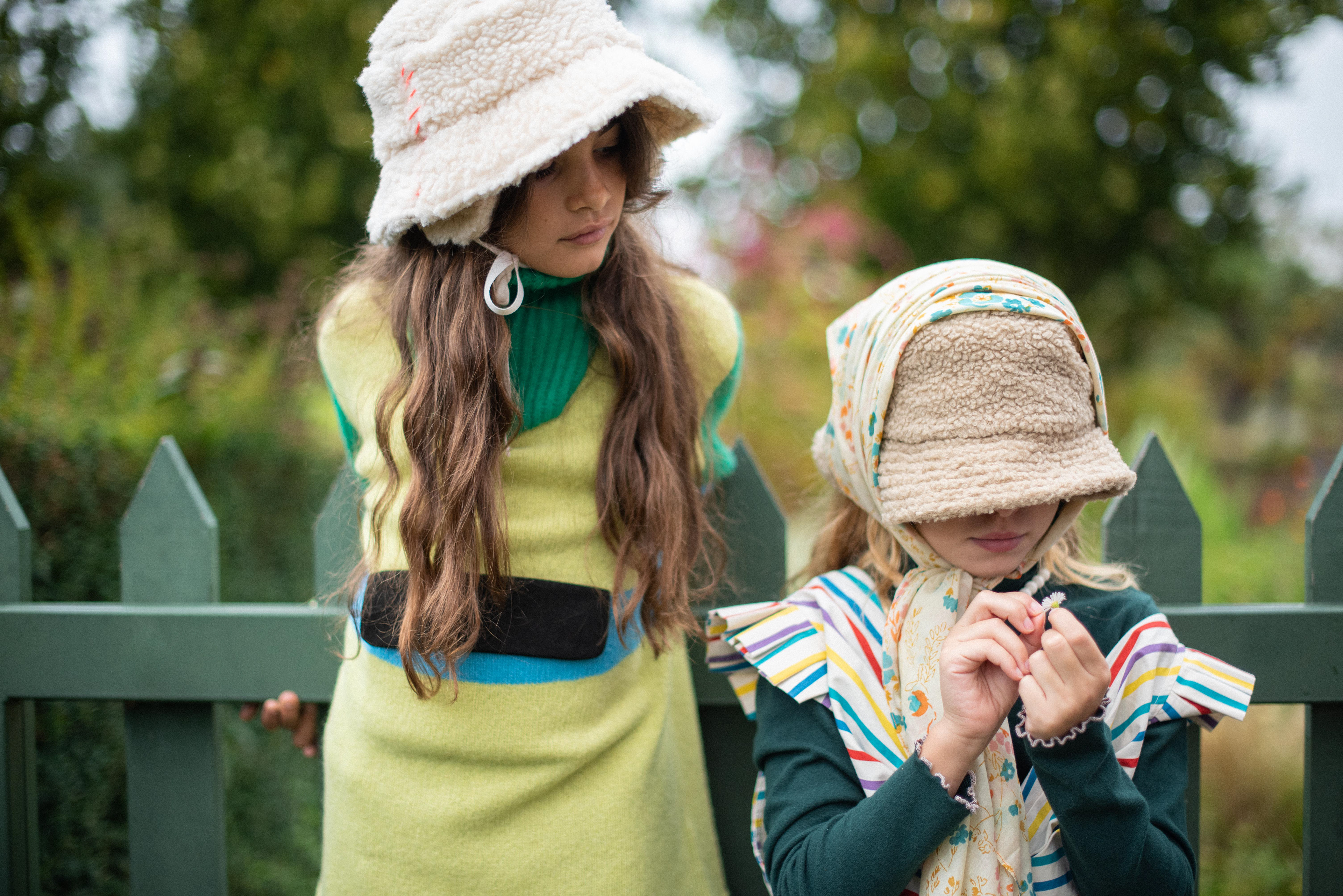 Hat: Tambere, Scarf: Lalé For Inka, Top: Bellerose @Smallable, Dress and Necklace : The Animals Observatory