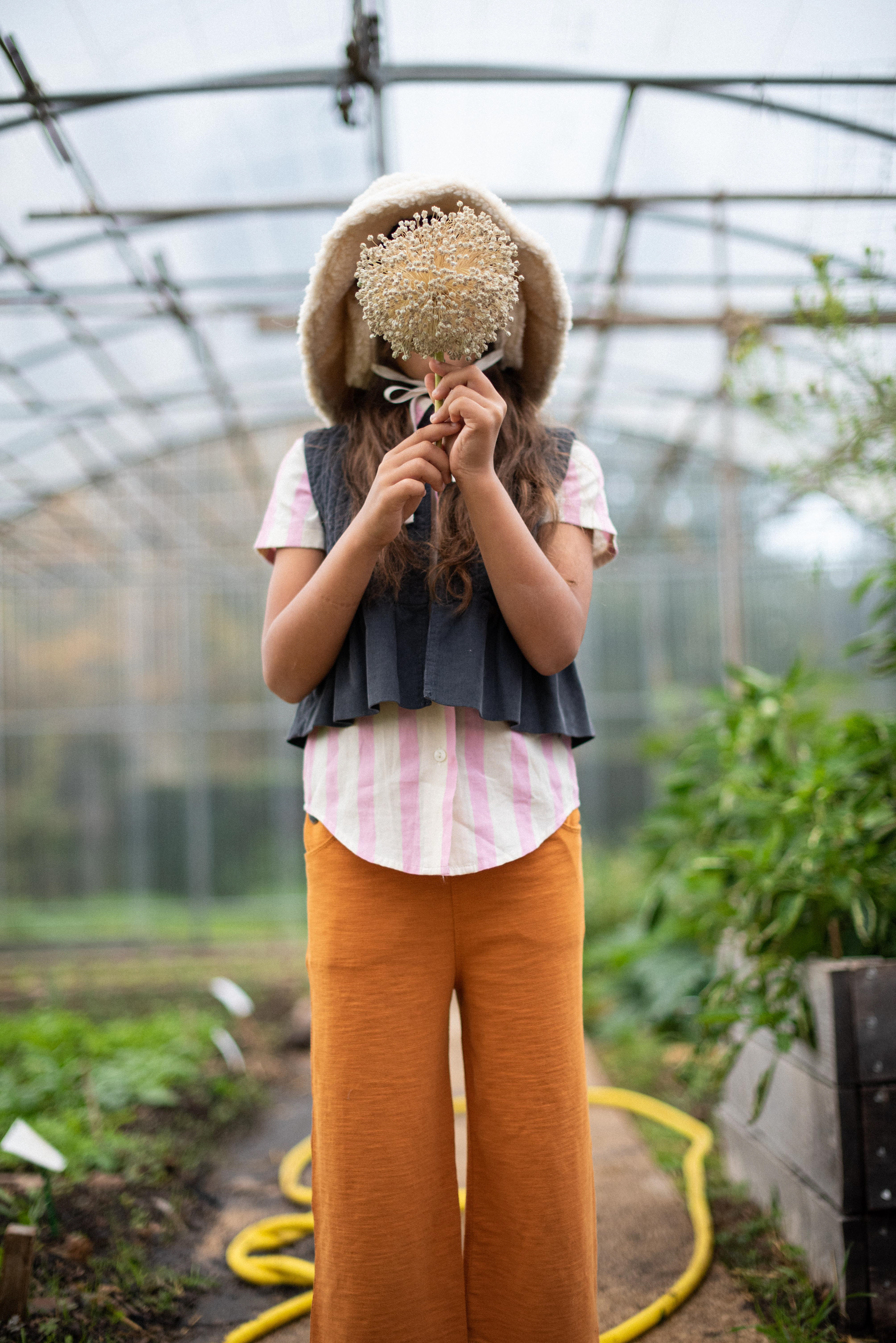 Hat & Dress: The Animals Observatory, Vest: Ligne Noire, Pants: Bellerose @Smallable