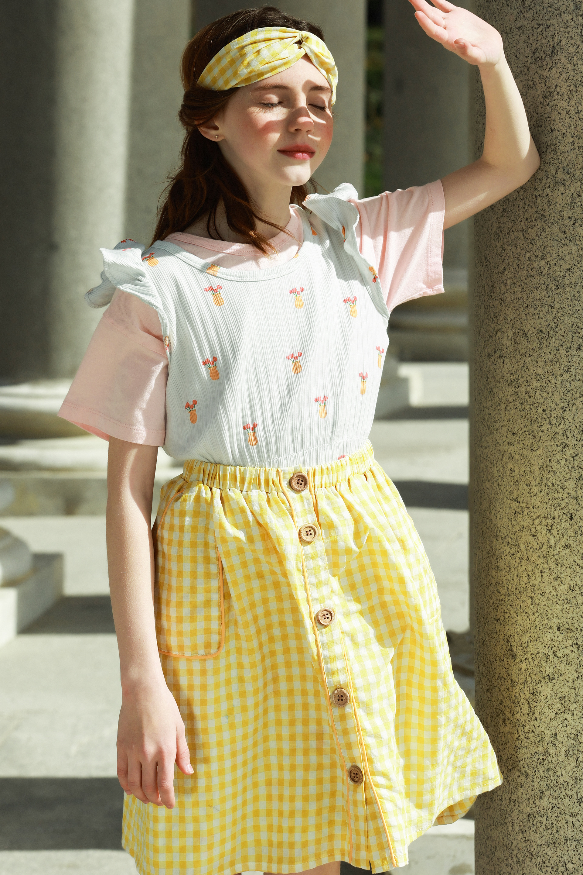Liilu pink crochet dress, Napaani checkered dress, Nueces dress, Tiny Cottons top, Young Soles shoes.