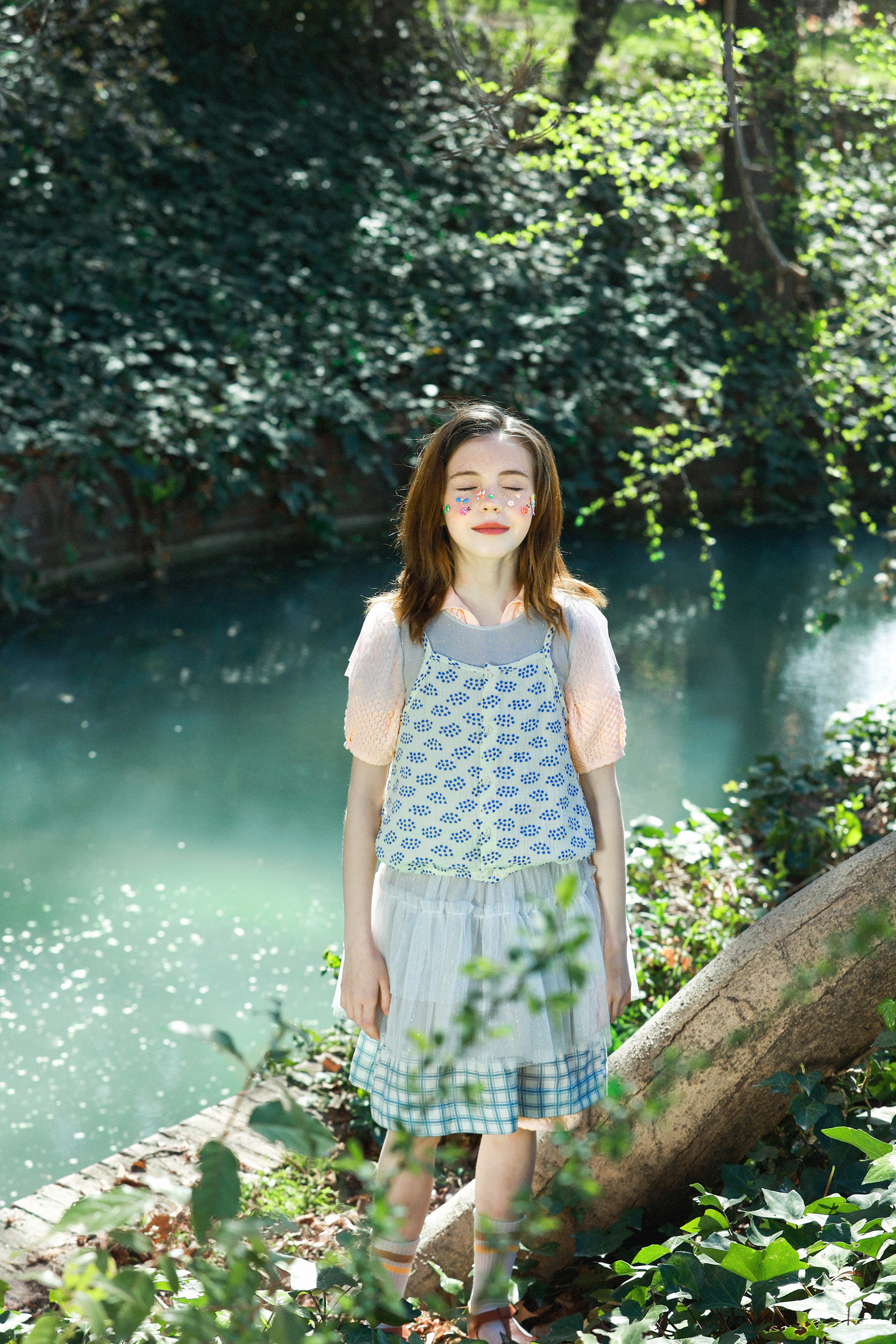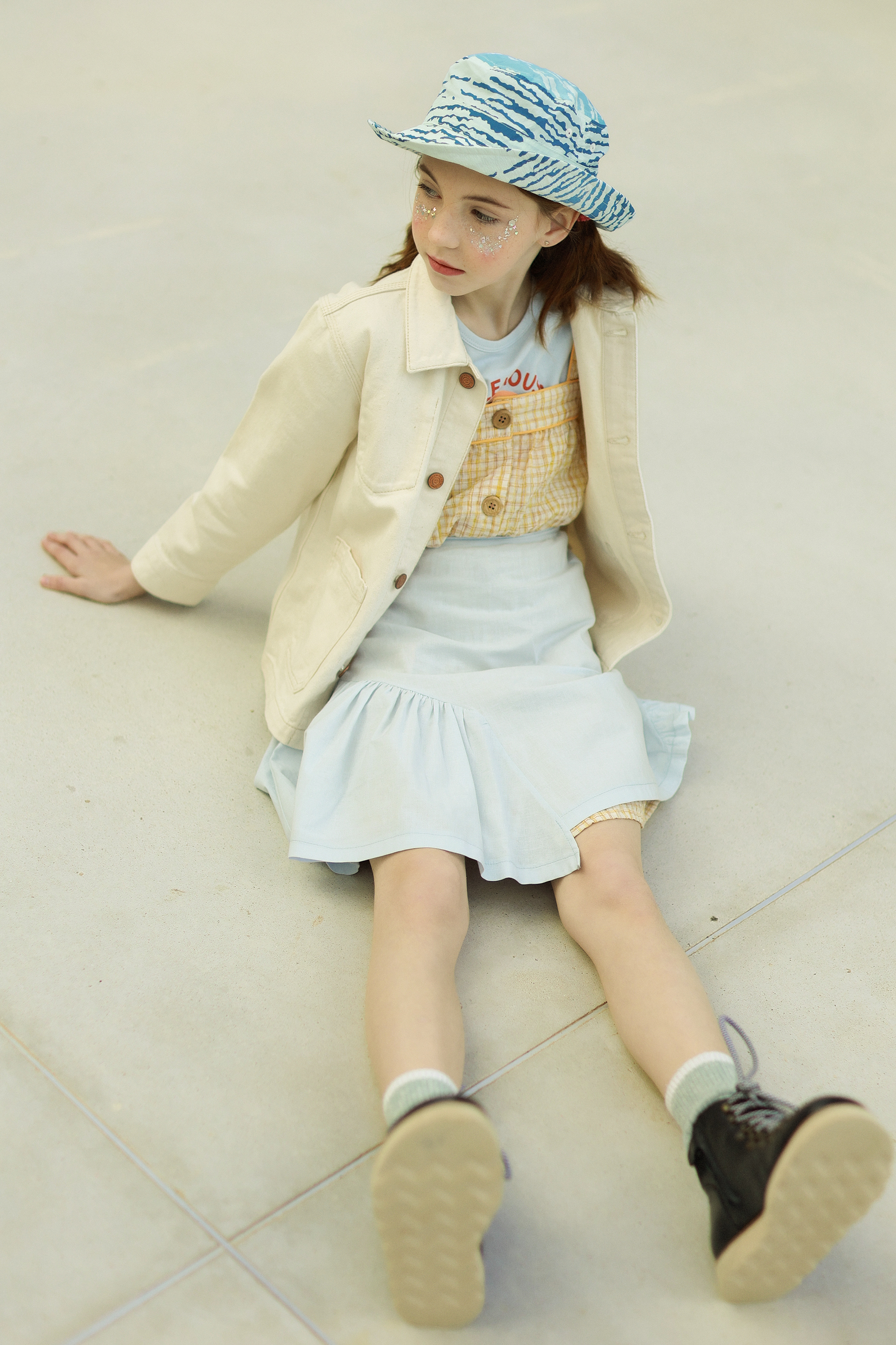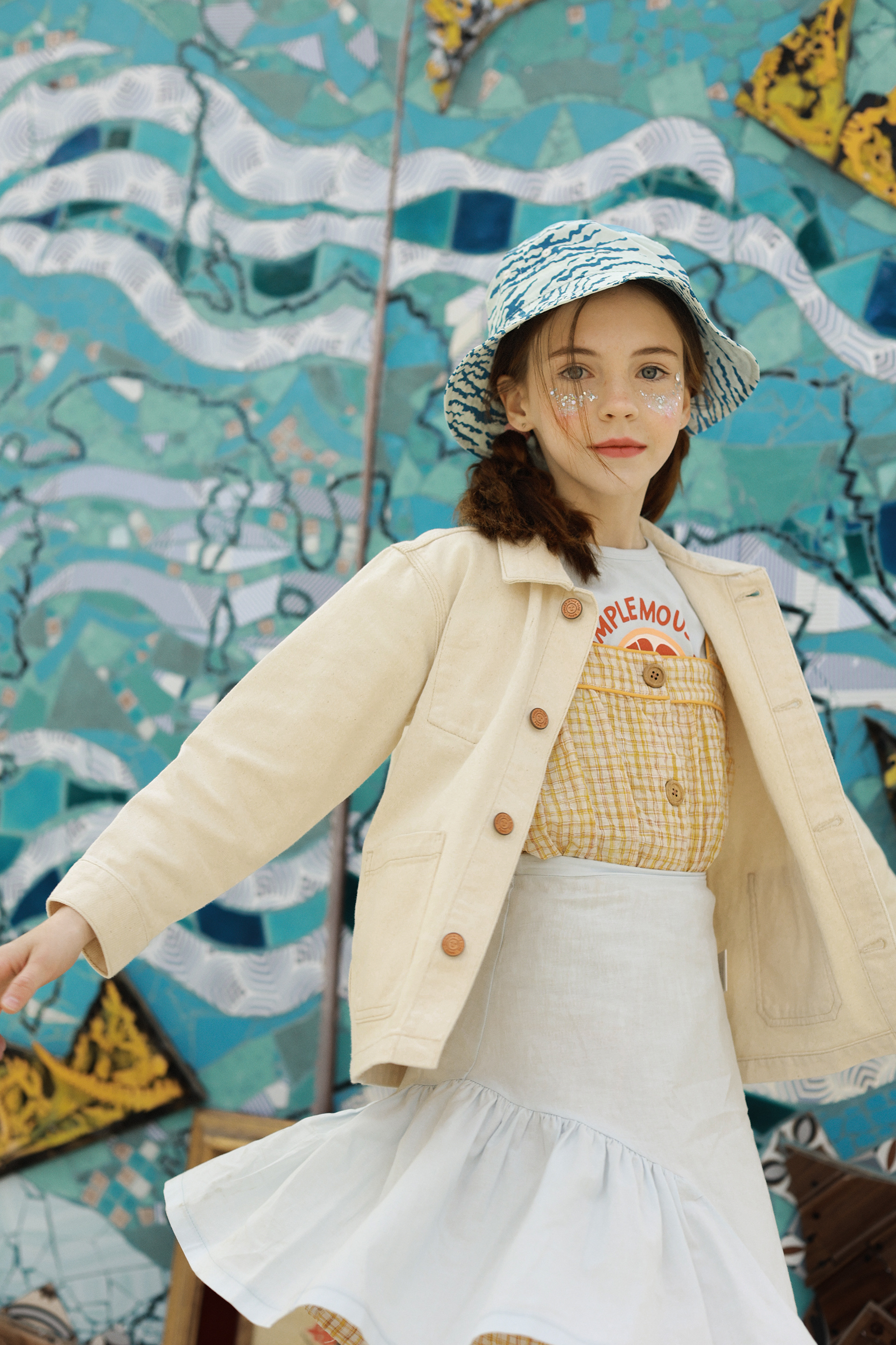 Maison Tabadoum T-shirt, Wander Wonder dress, LMN3 skirt, Finger in the Nose jacket, Finger in the Nose hat, Young Soles boots.