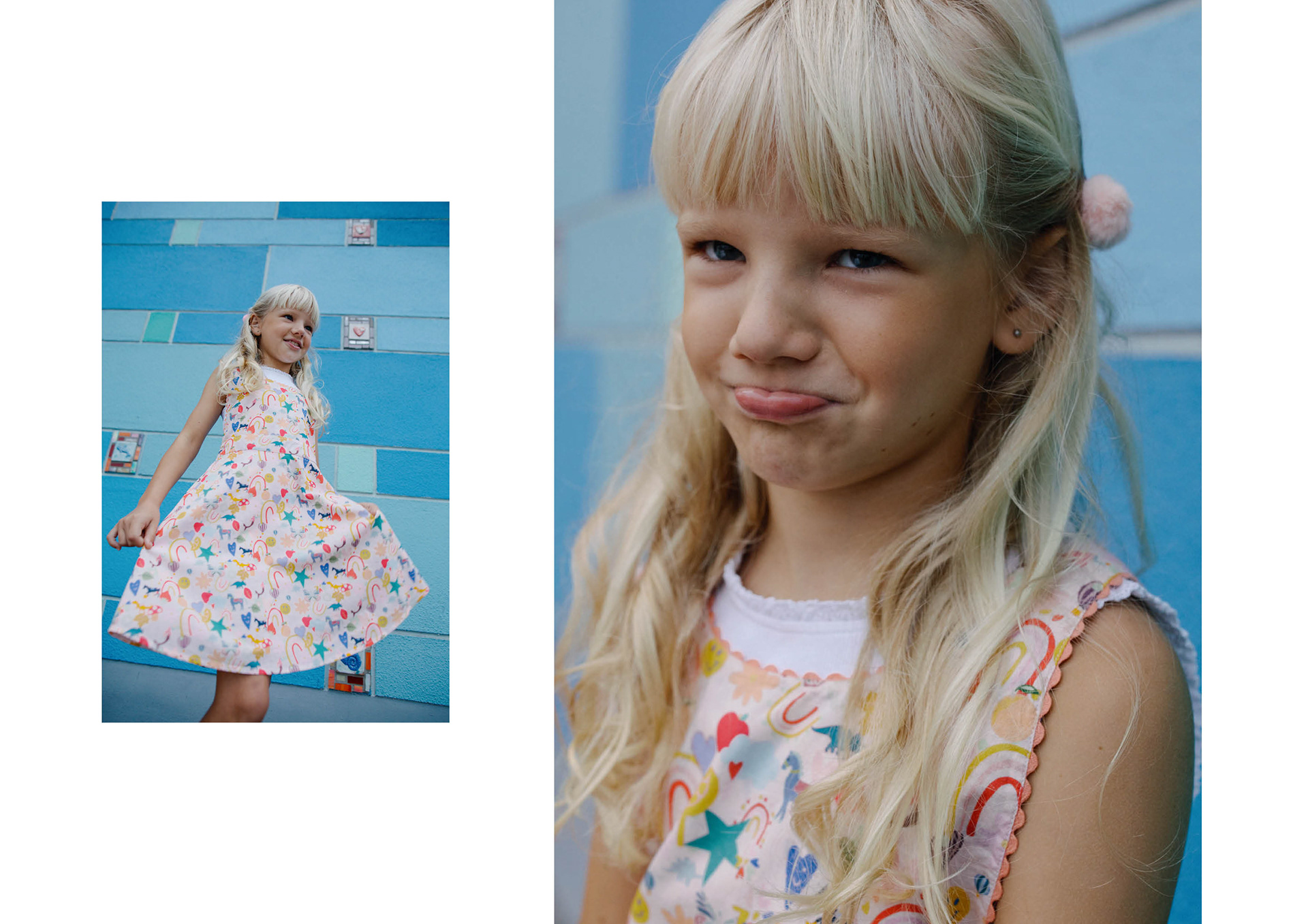 Emilia wears dress by Stych, hair accessories by Little Angels, Accessorize