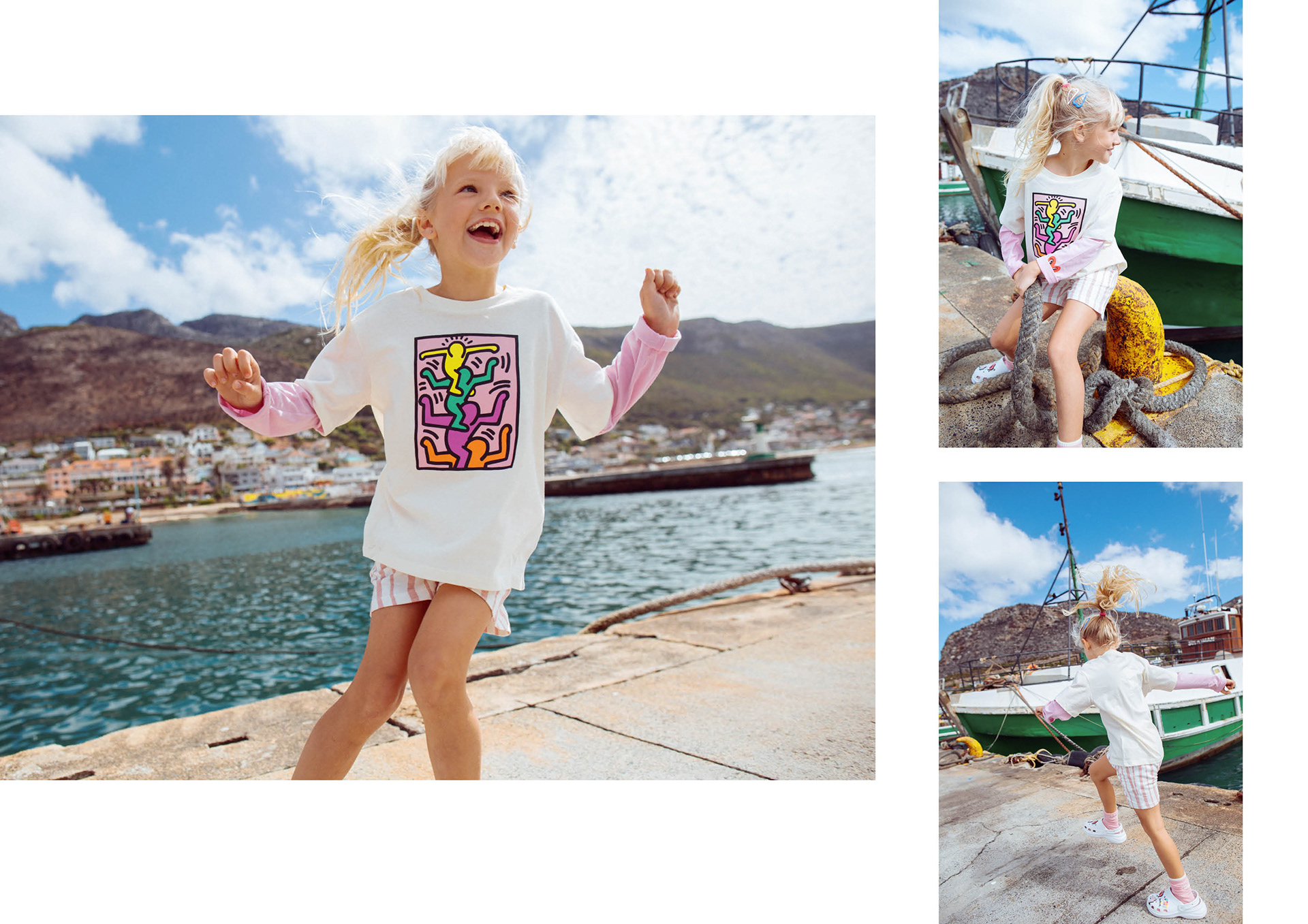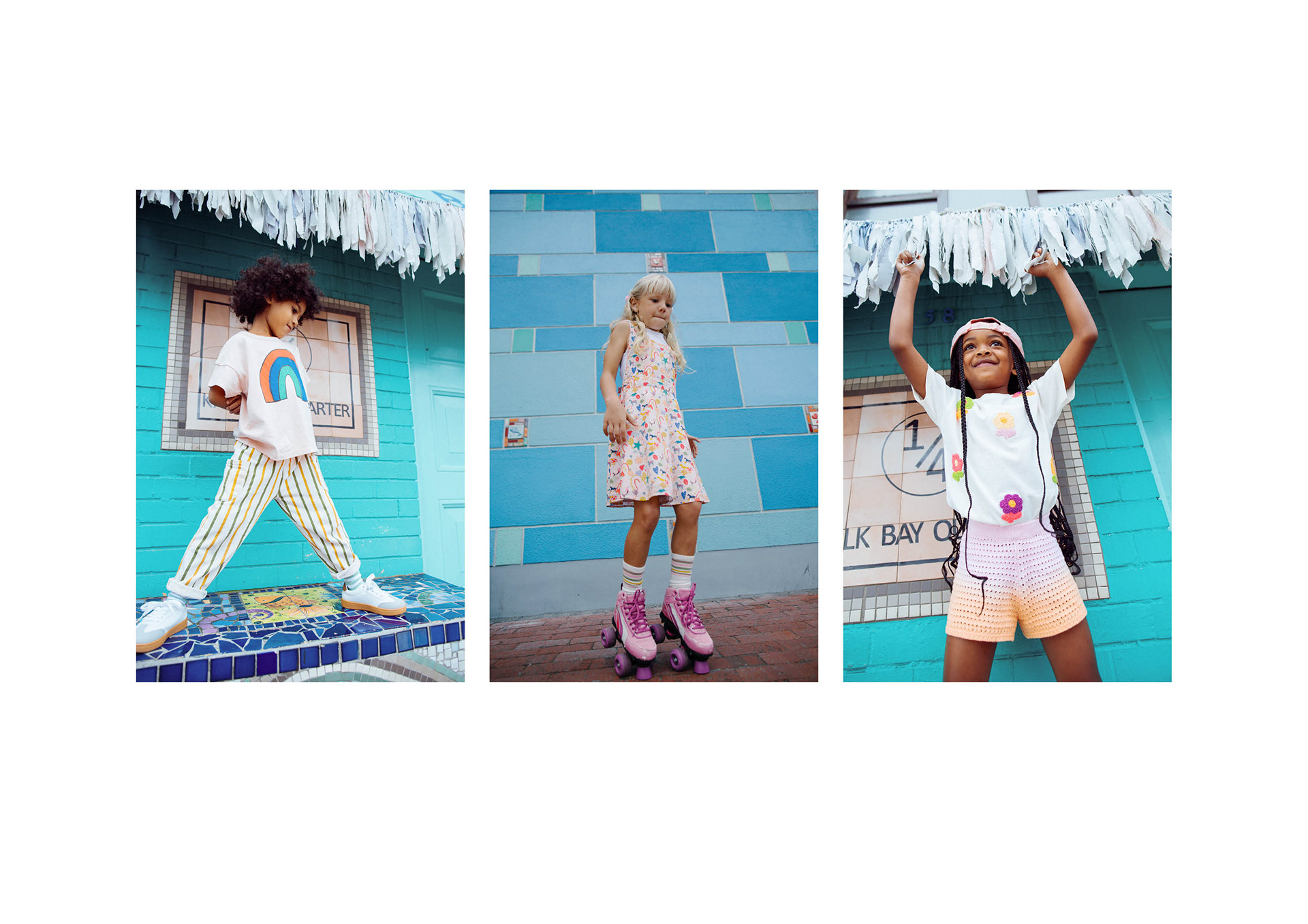 Eva wears Tshirt by Frugii, shorts by John Lewis. Socks by Cotton On & shoes by Ackermans