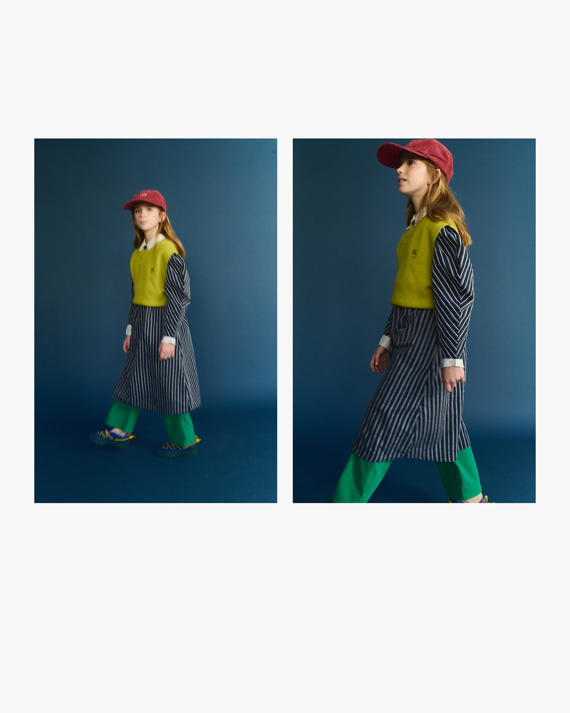 Valentina: Vest Main Story, Pants Compaña Fantástica Mini, Shirt Tangerine, Dress Tangerine, Hoes Camper x Bobo Choses, Cap The New Society