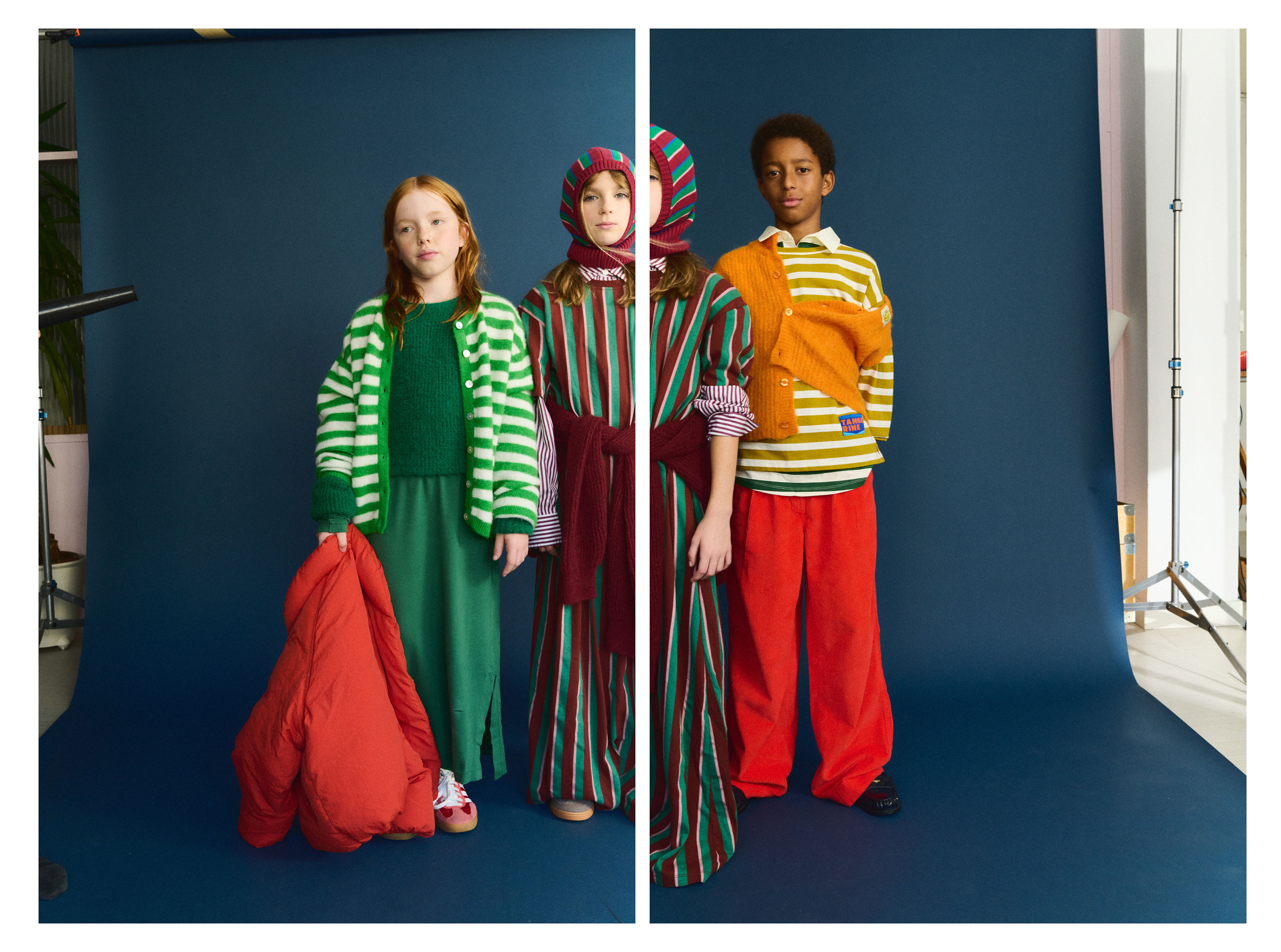 Giulia: Jacket True Artist, Striped Cardigan American Vintage, Green Sweater Compañia Fantastica Mini, Dress The Animals Observatory
