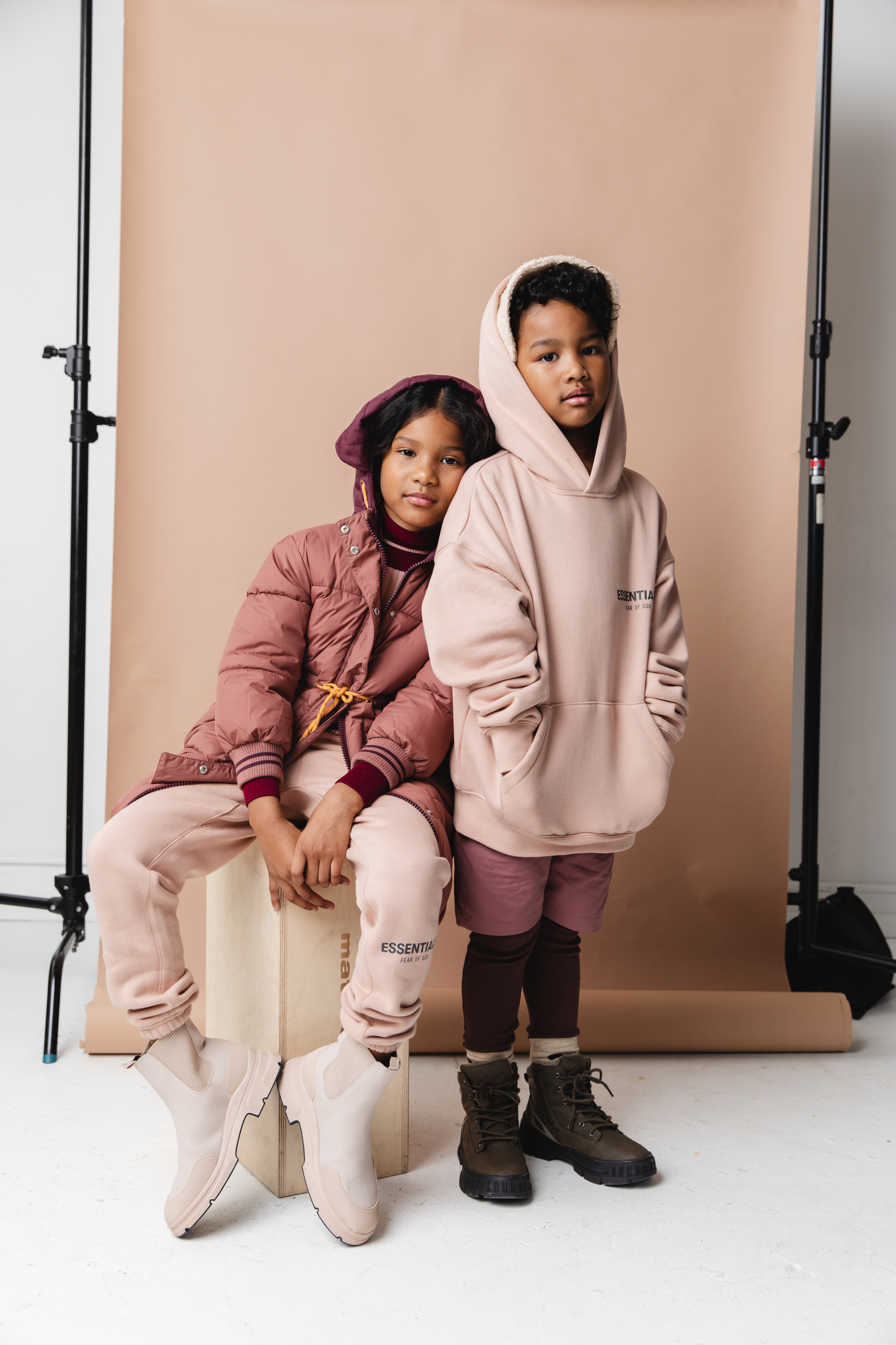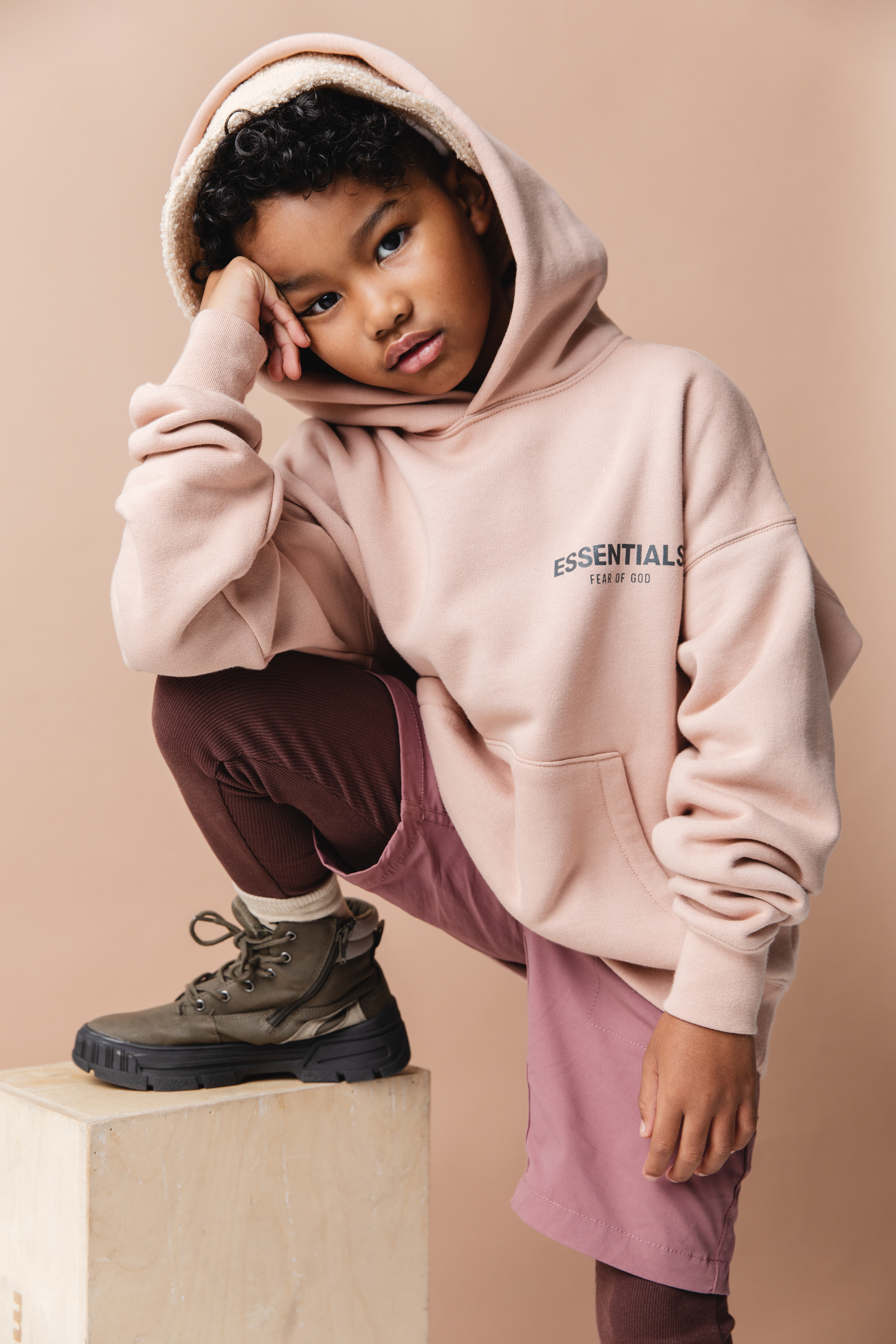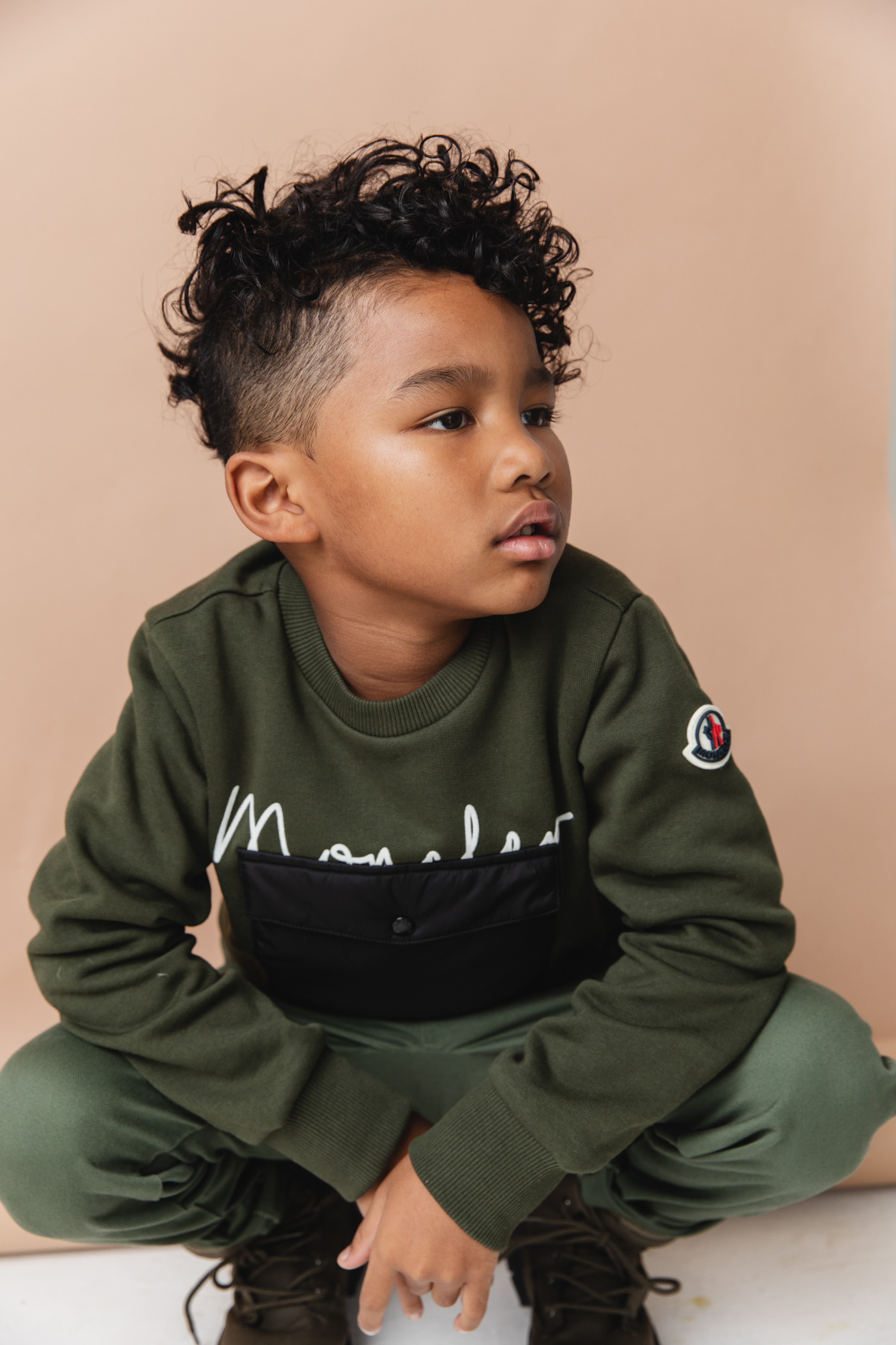 London: Jacket Zara Kids, Turtleneck Moncler, Sweatpants Fear of God, Boots Zara Kids
