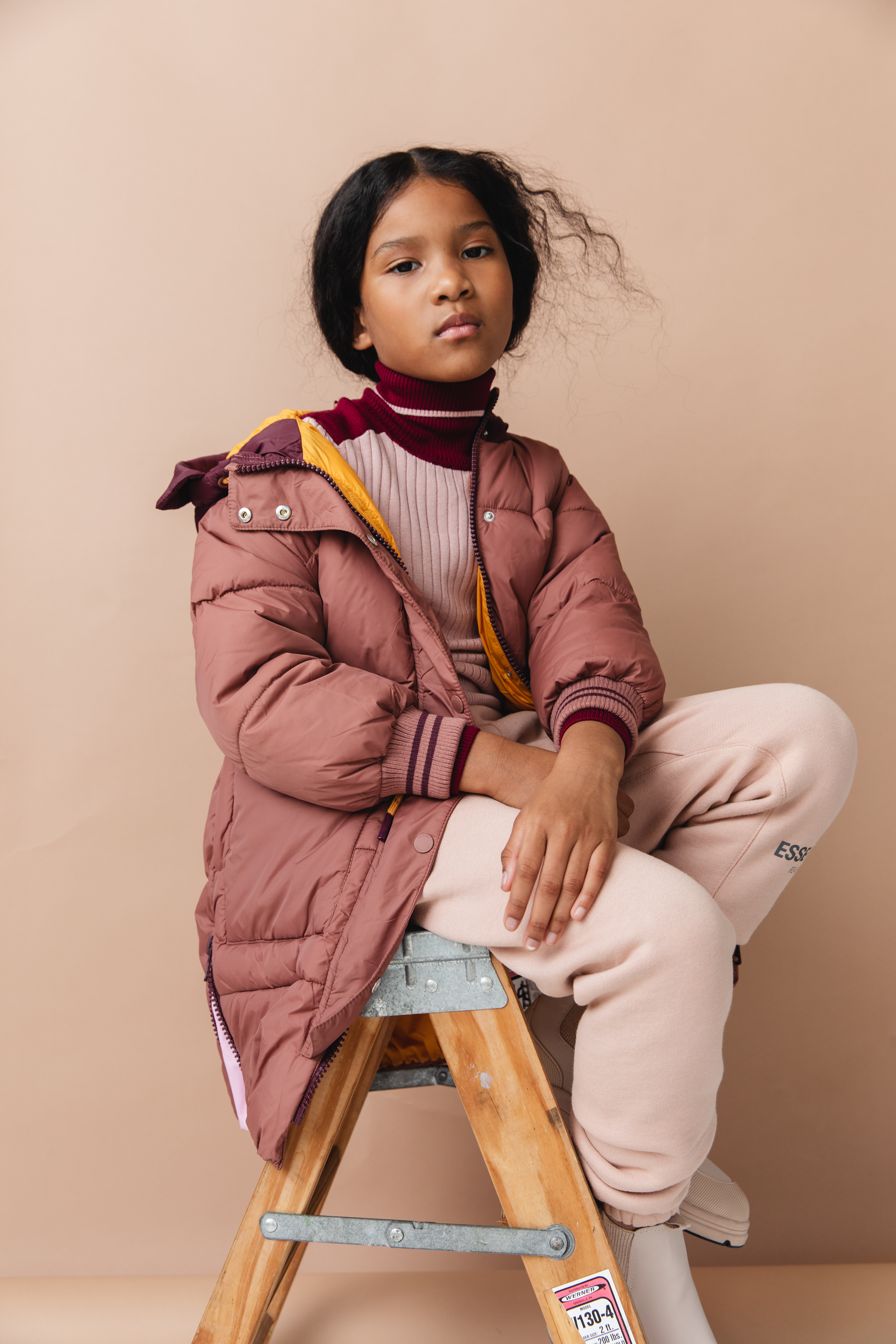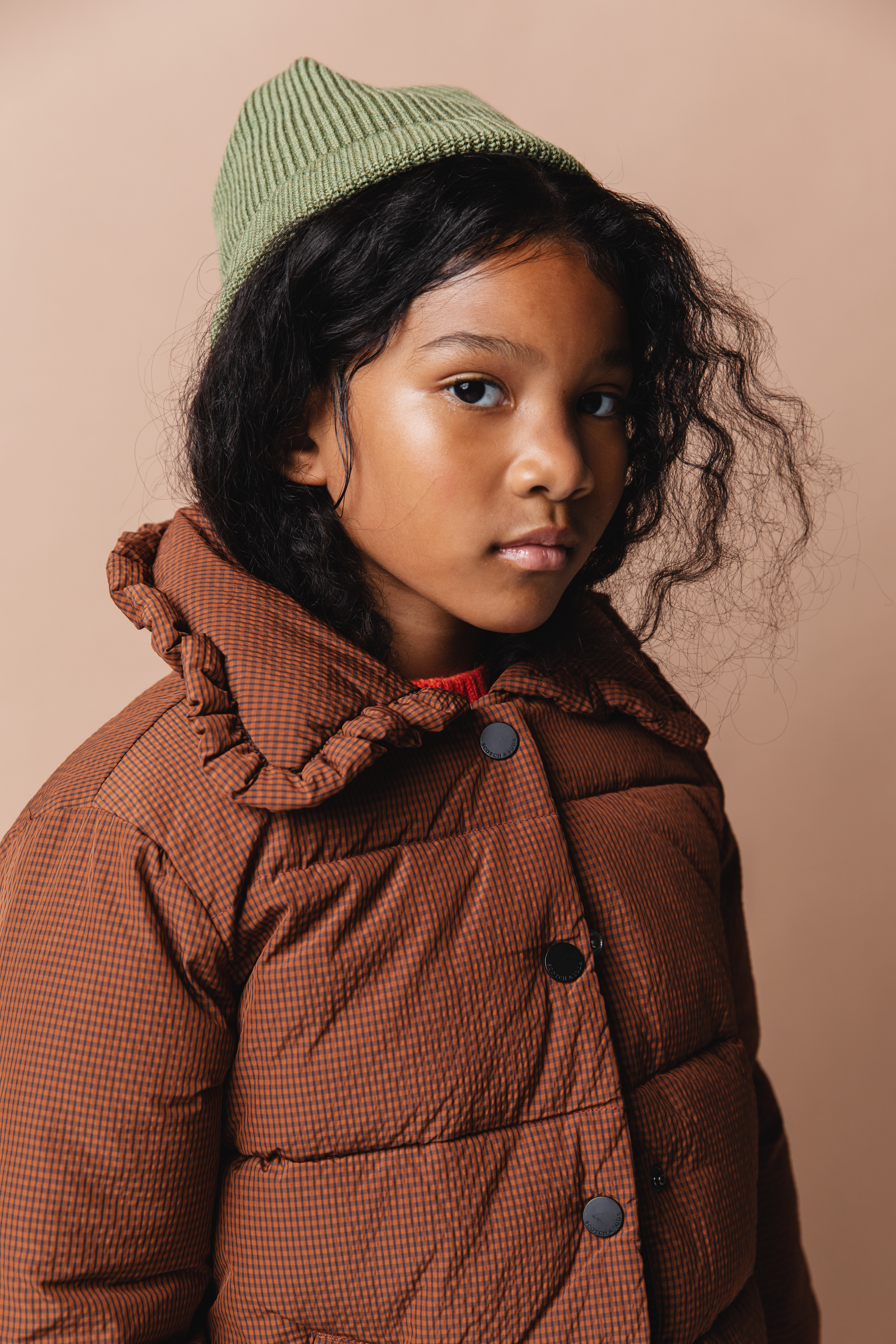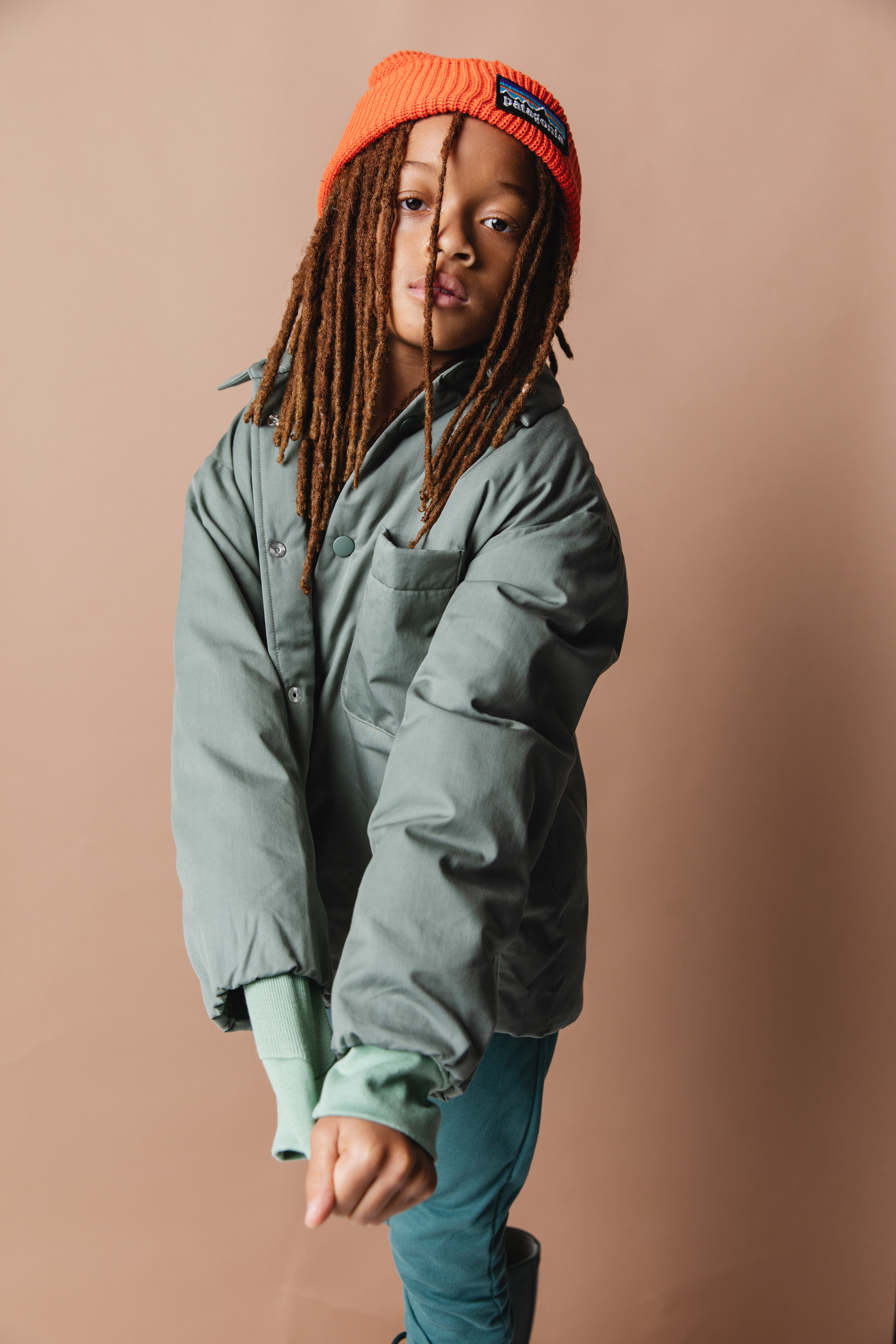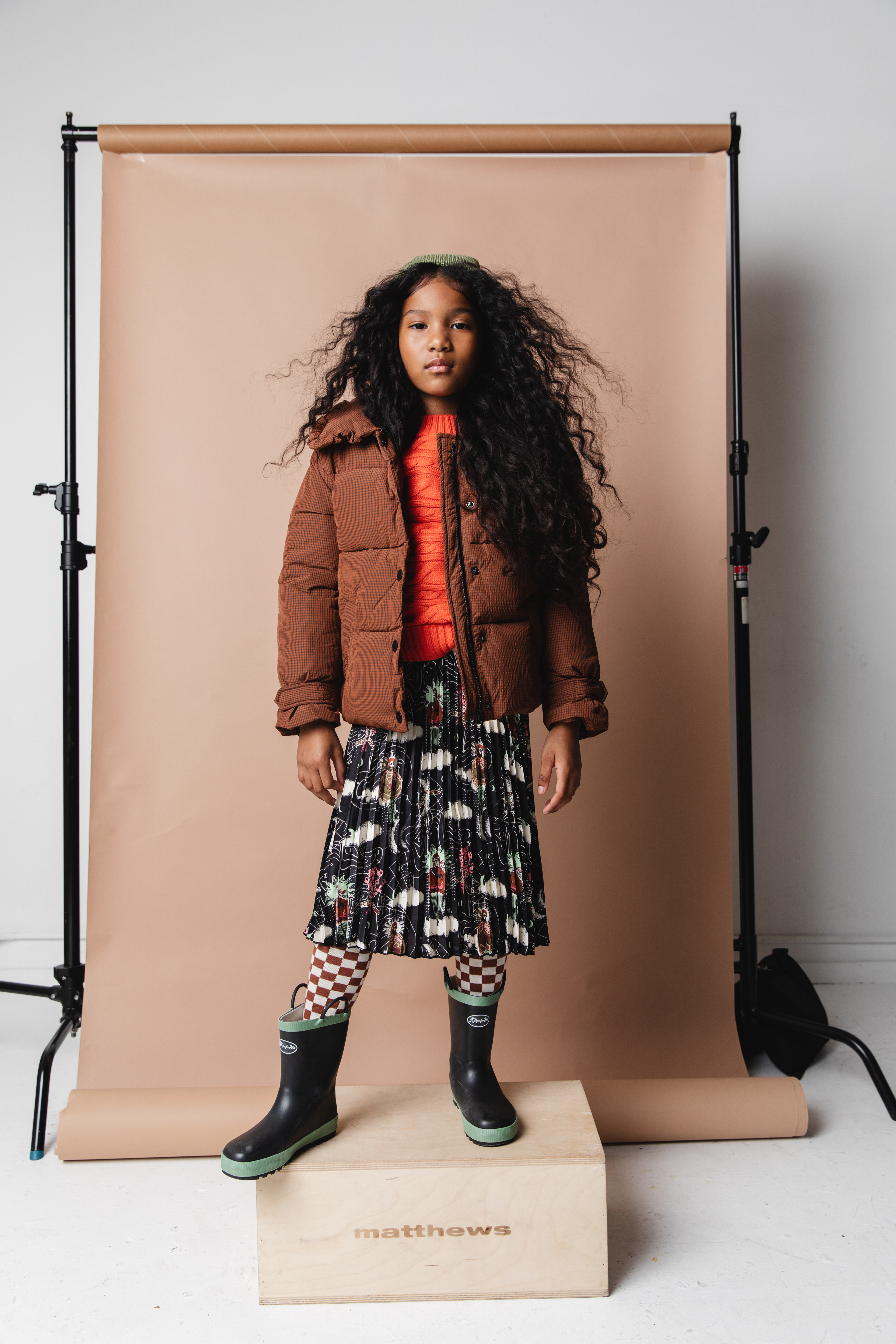 Scotch & Soda Puffer Coat and Dress, Sweater Freepeople, Boots KomForme Kids, Socks: Stylists own, Hat Carhartt Kids