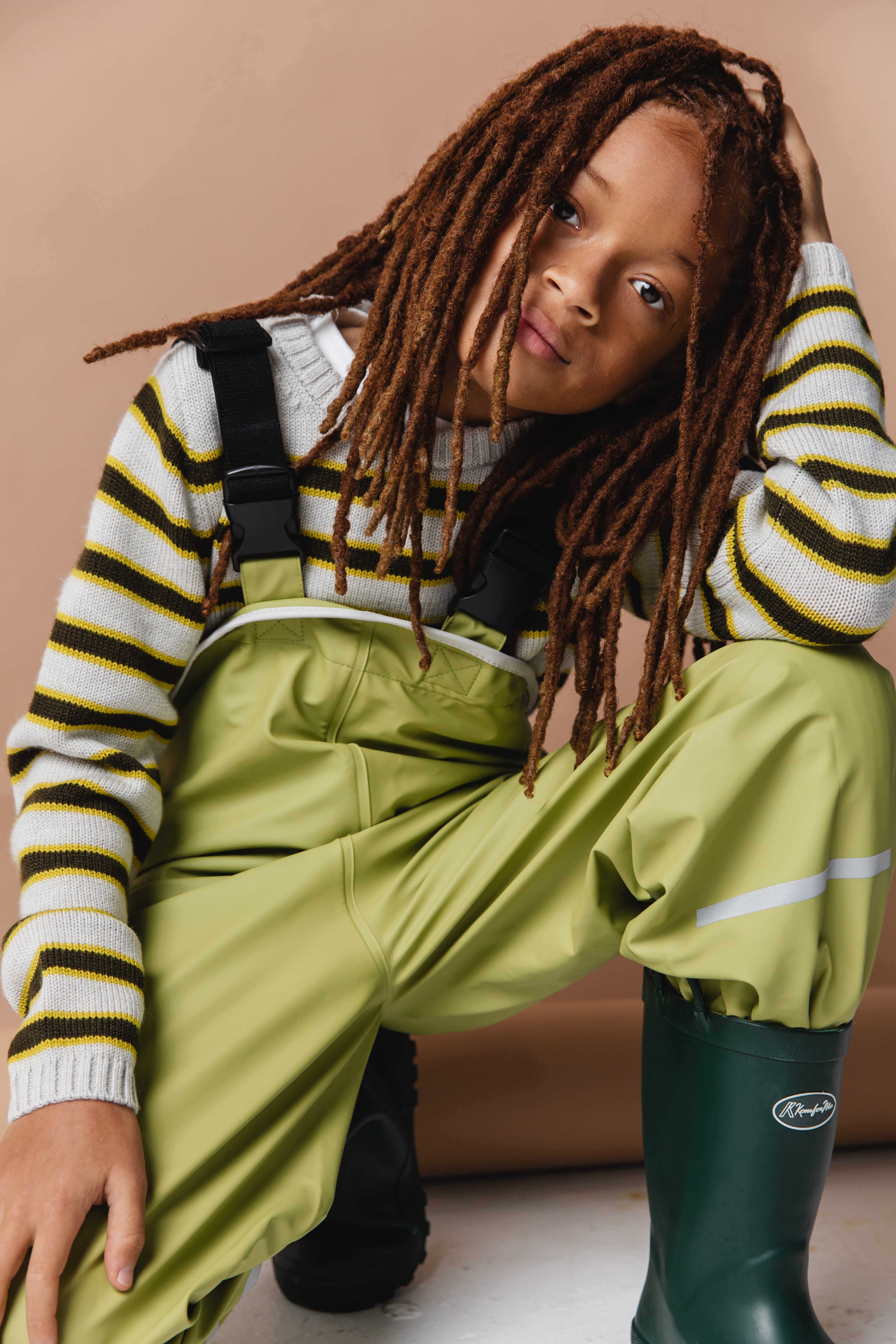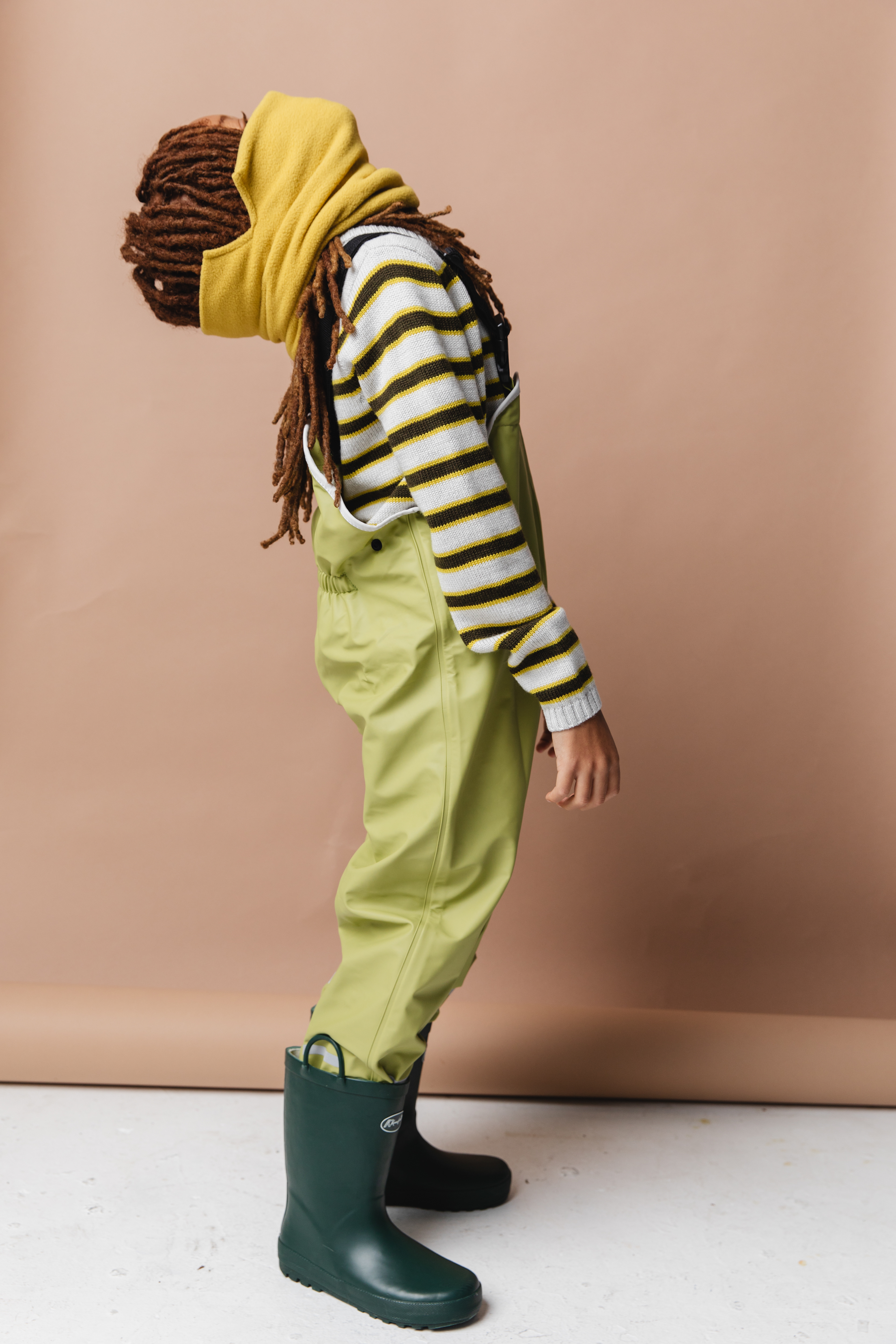 Turtleneck iets frans, Rain Bib AliWiner Store, Boots KomForme Kids, Rain Hat Raima Rainy Kids