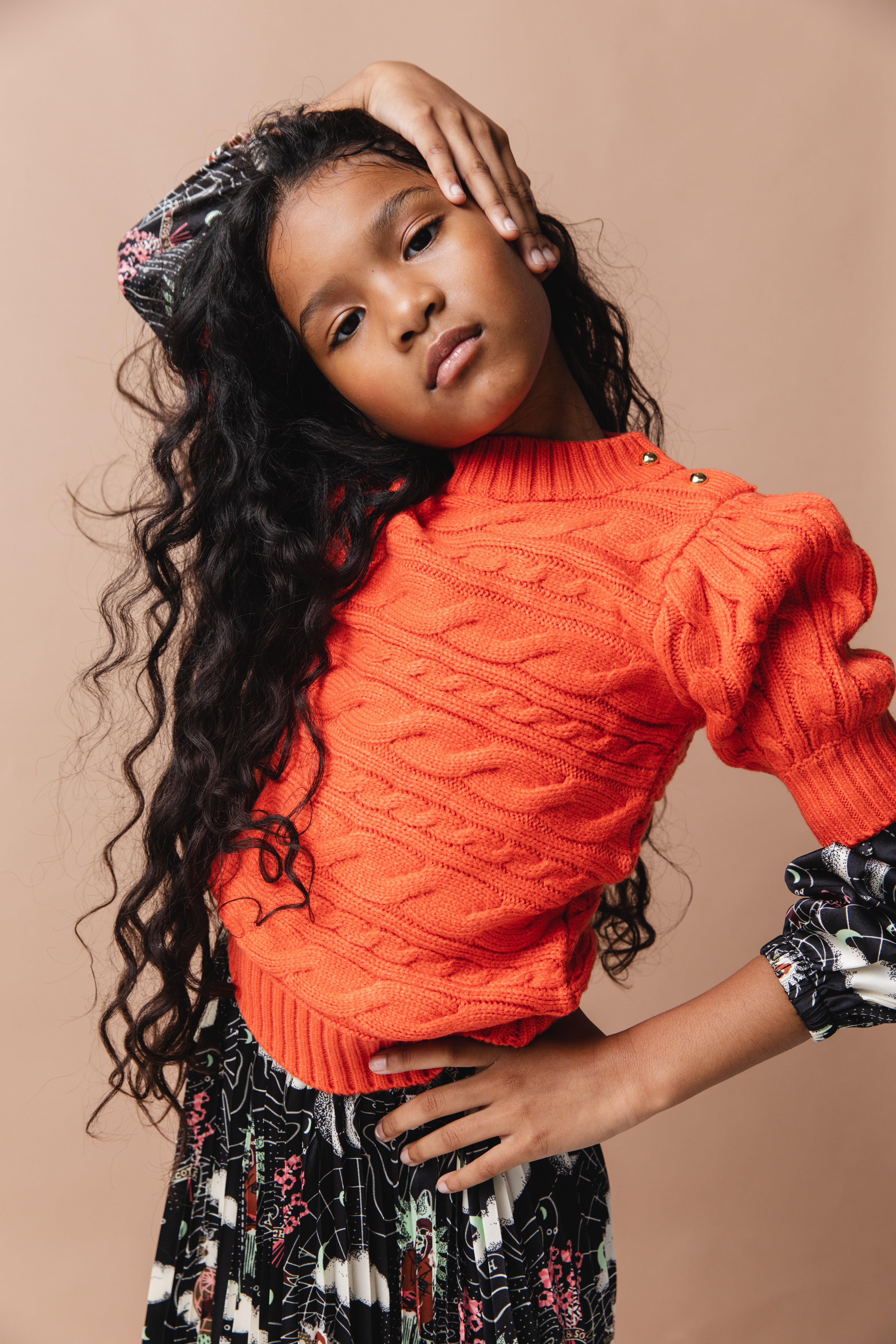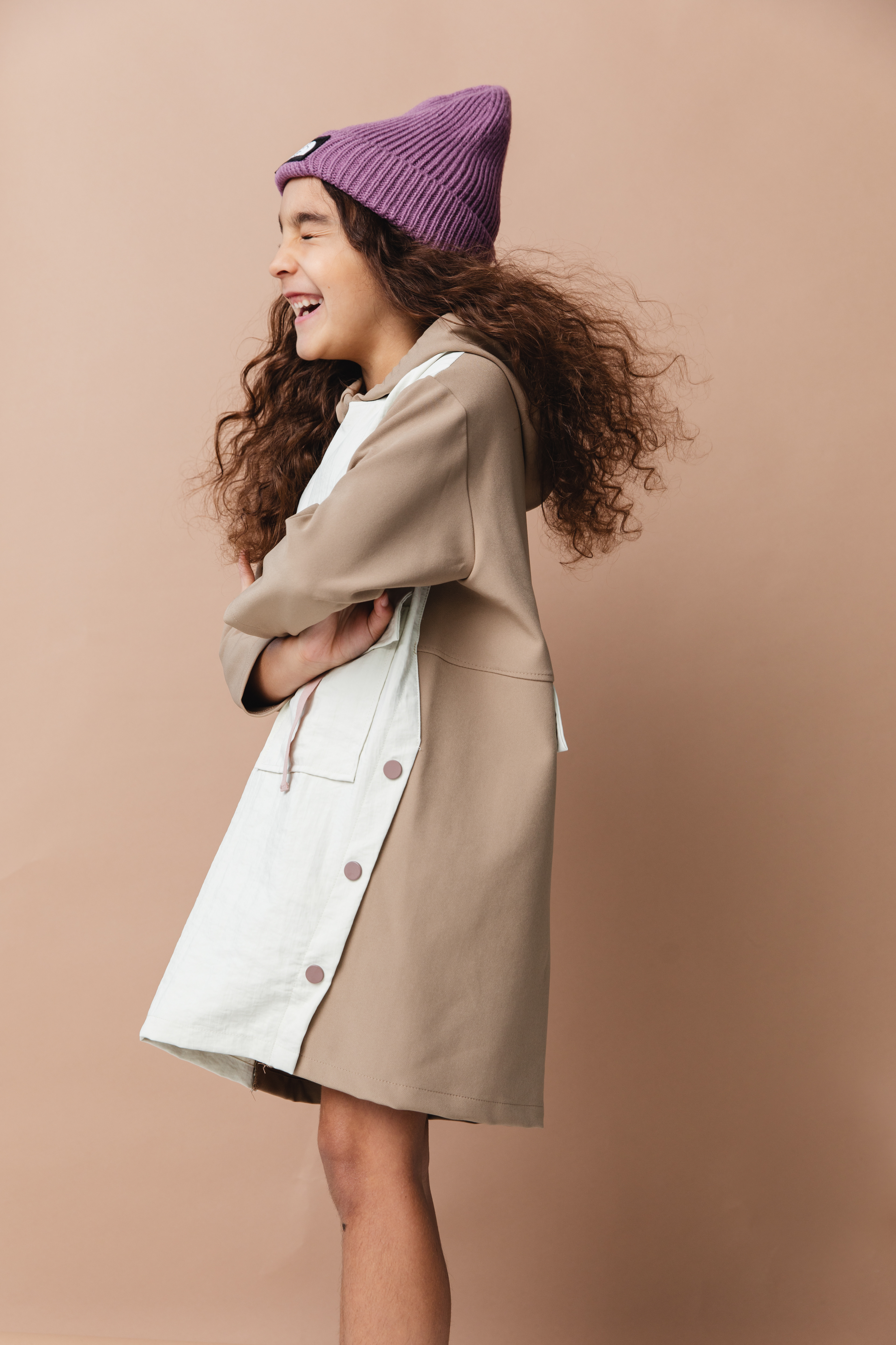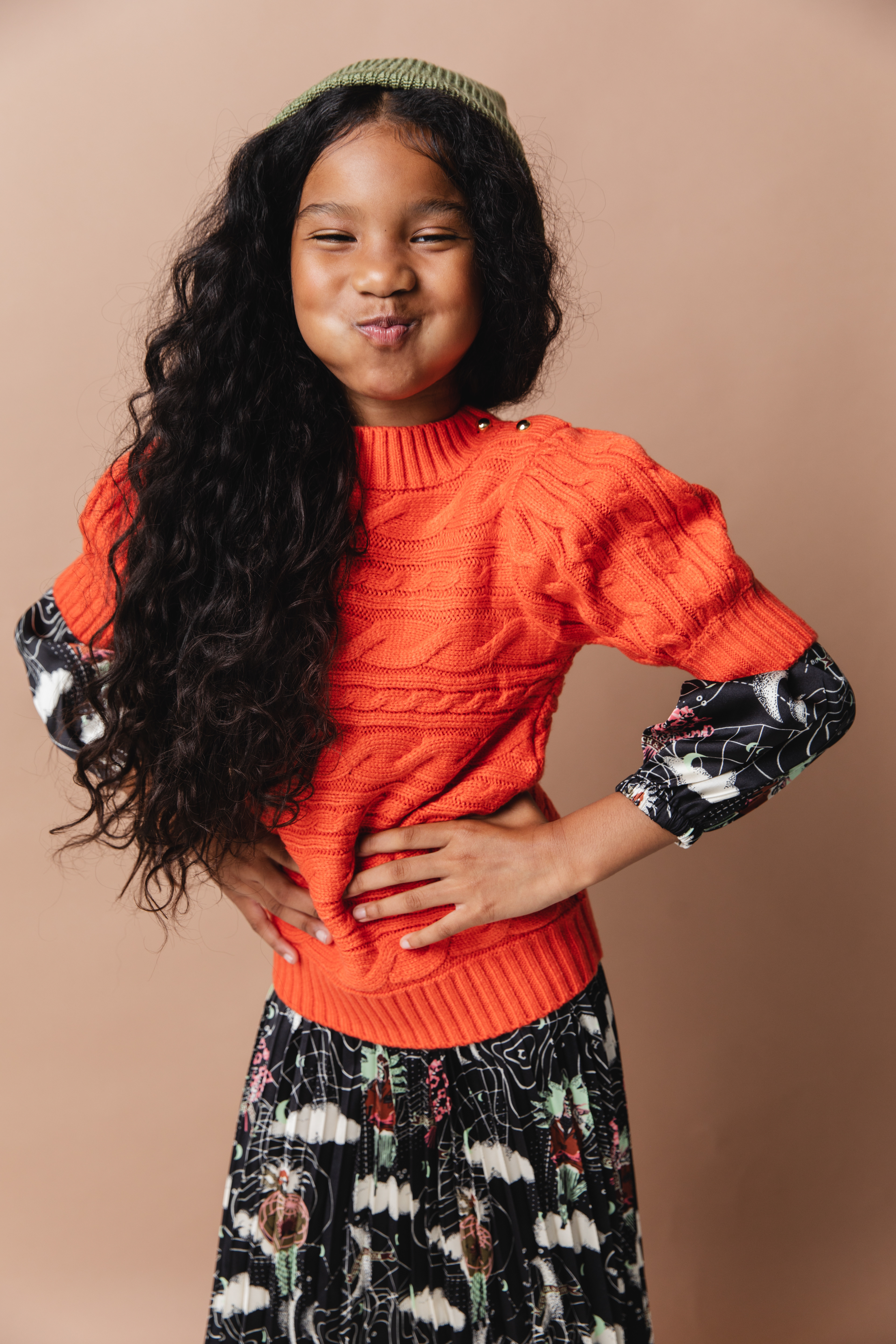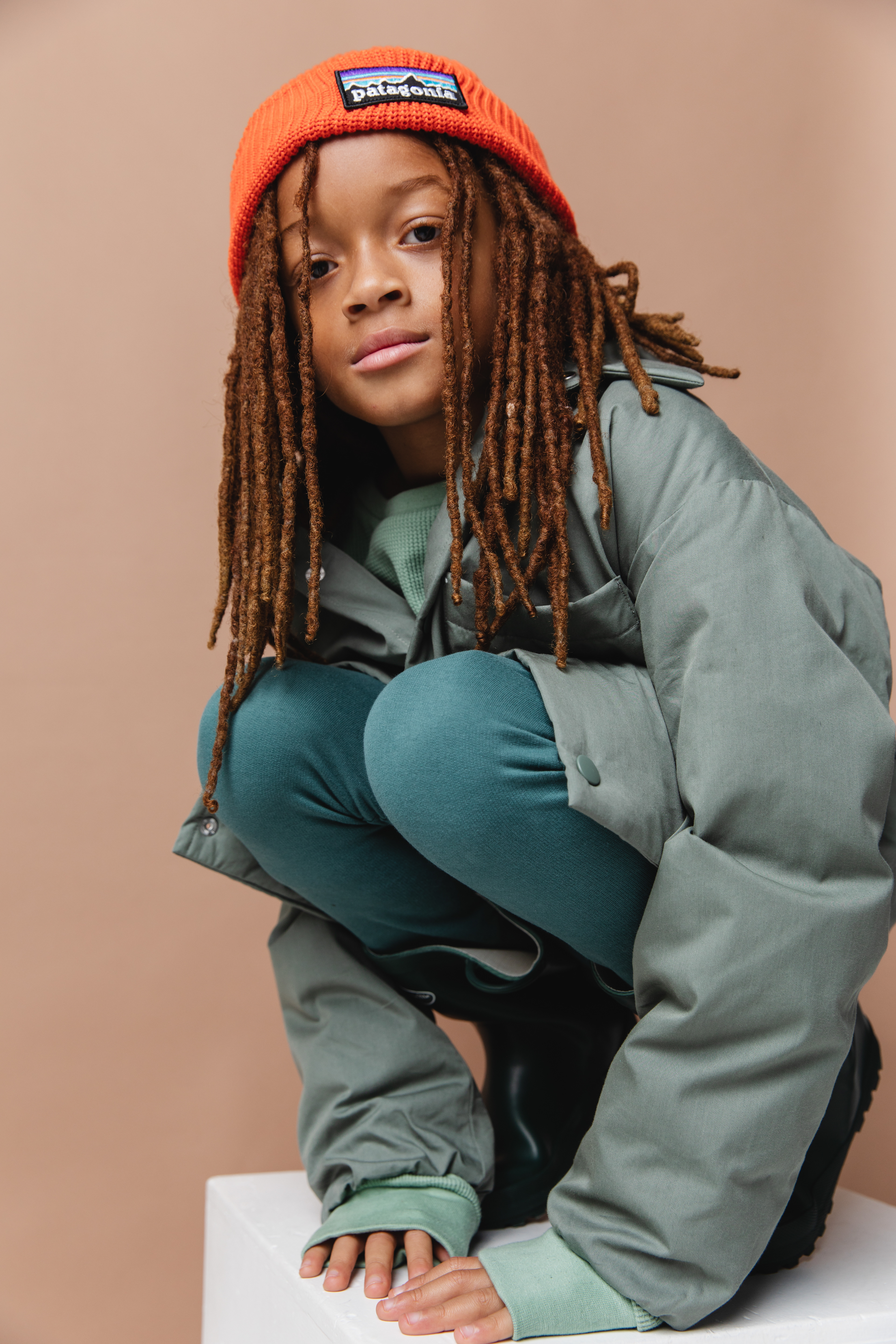 Scotch & Soda Dress, Sweater Freepeople, Boots KomForme Kids, Socks: Stylists own, Hat Carhartt Kids