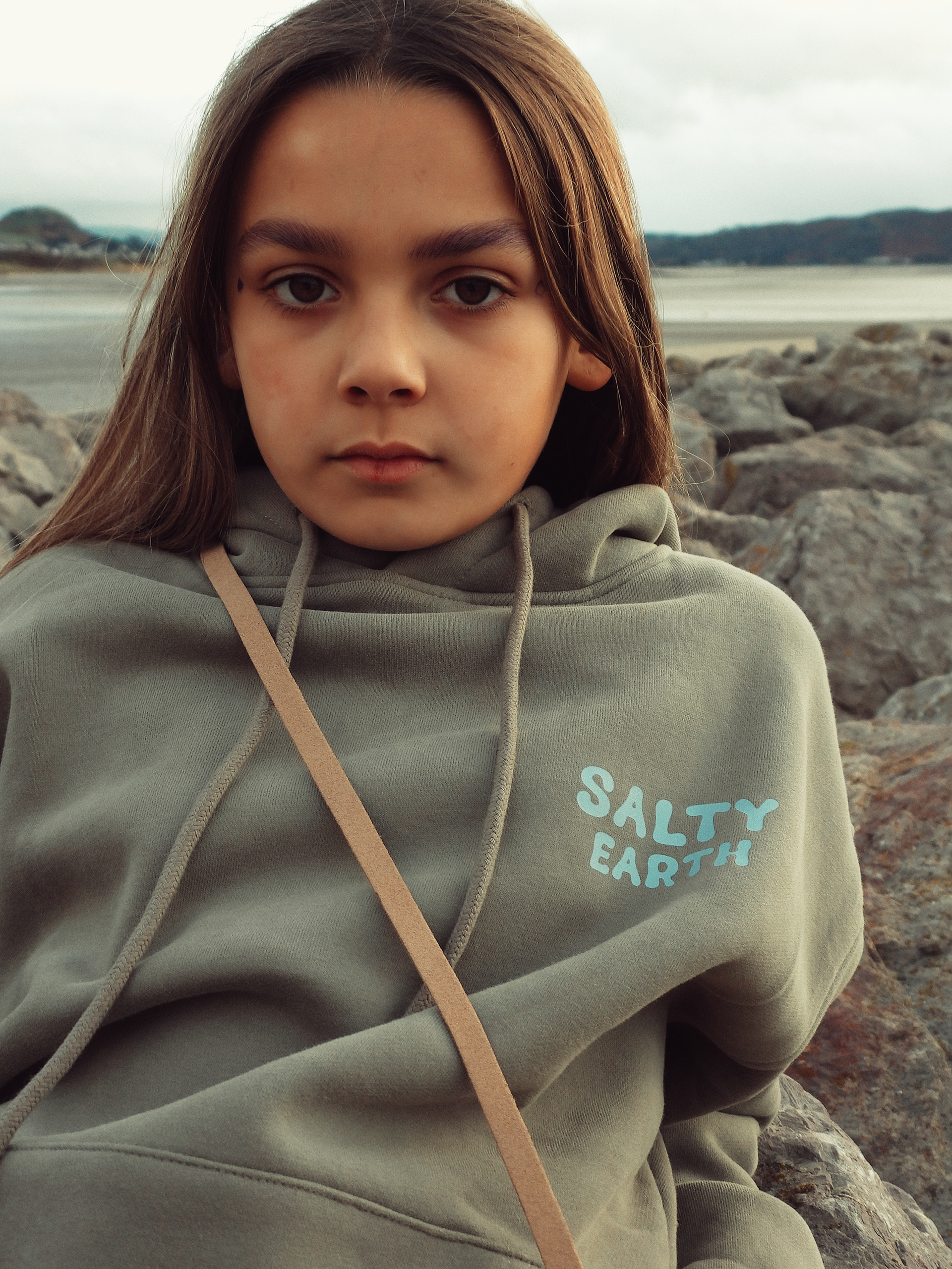 Green oversized jumper on older model SALTY EARTH @saltyearth