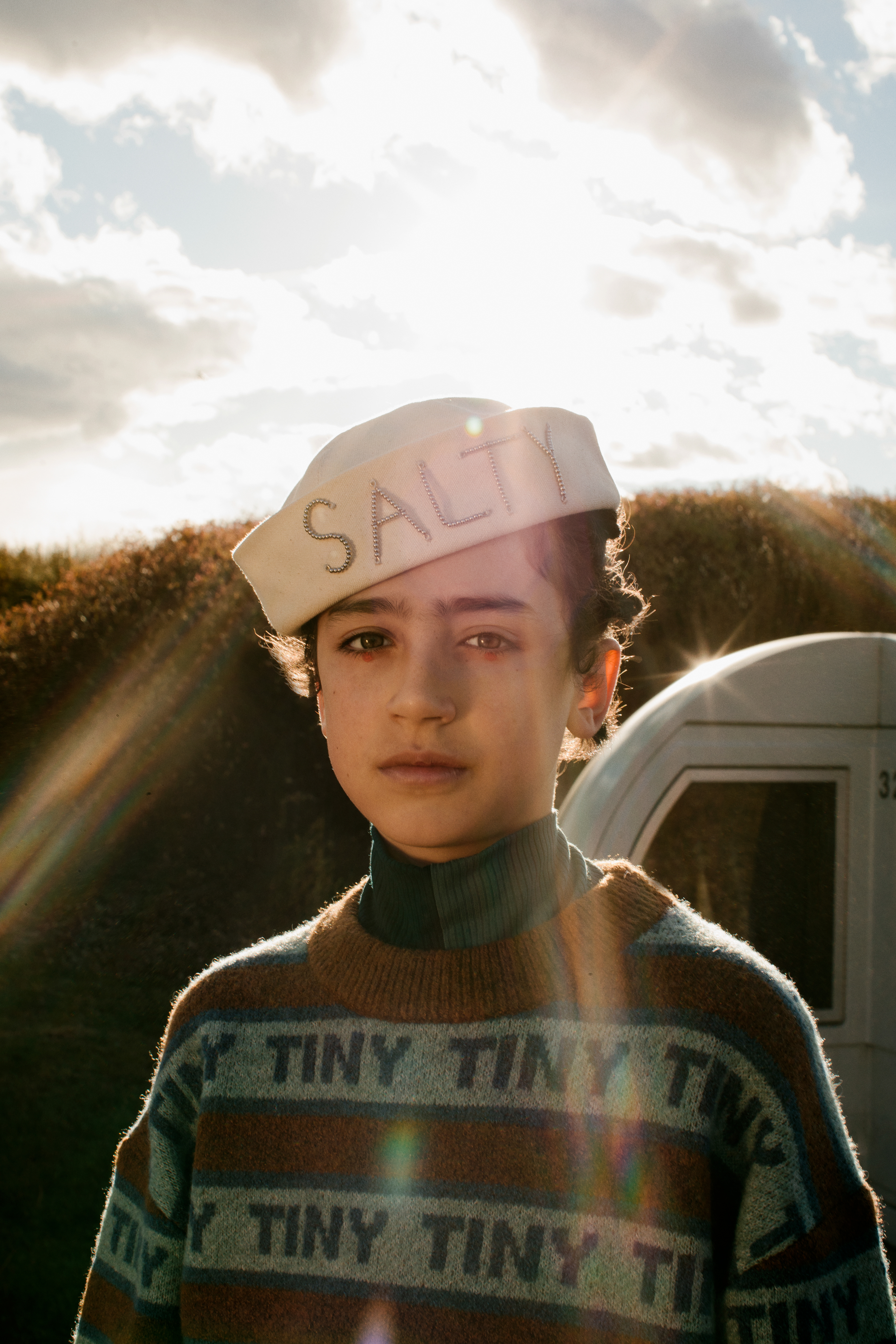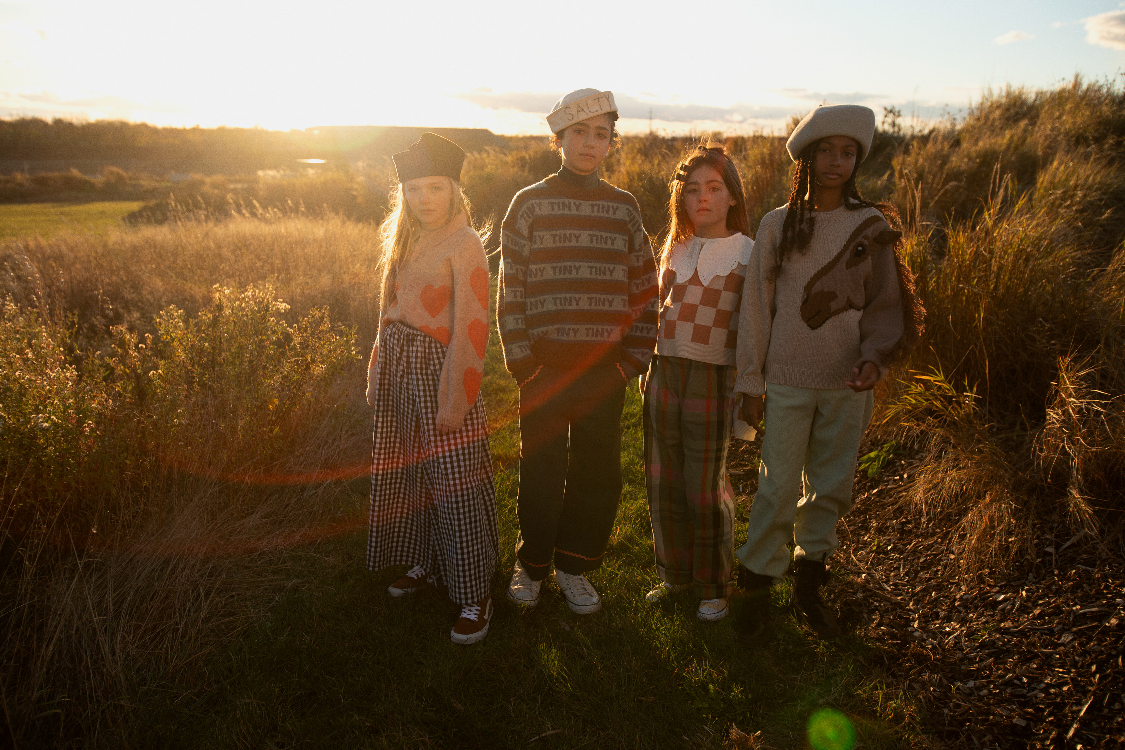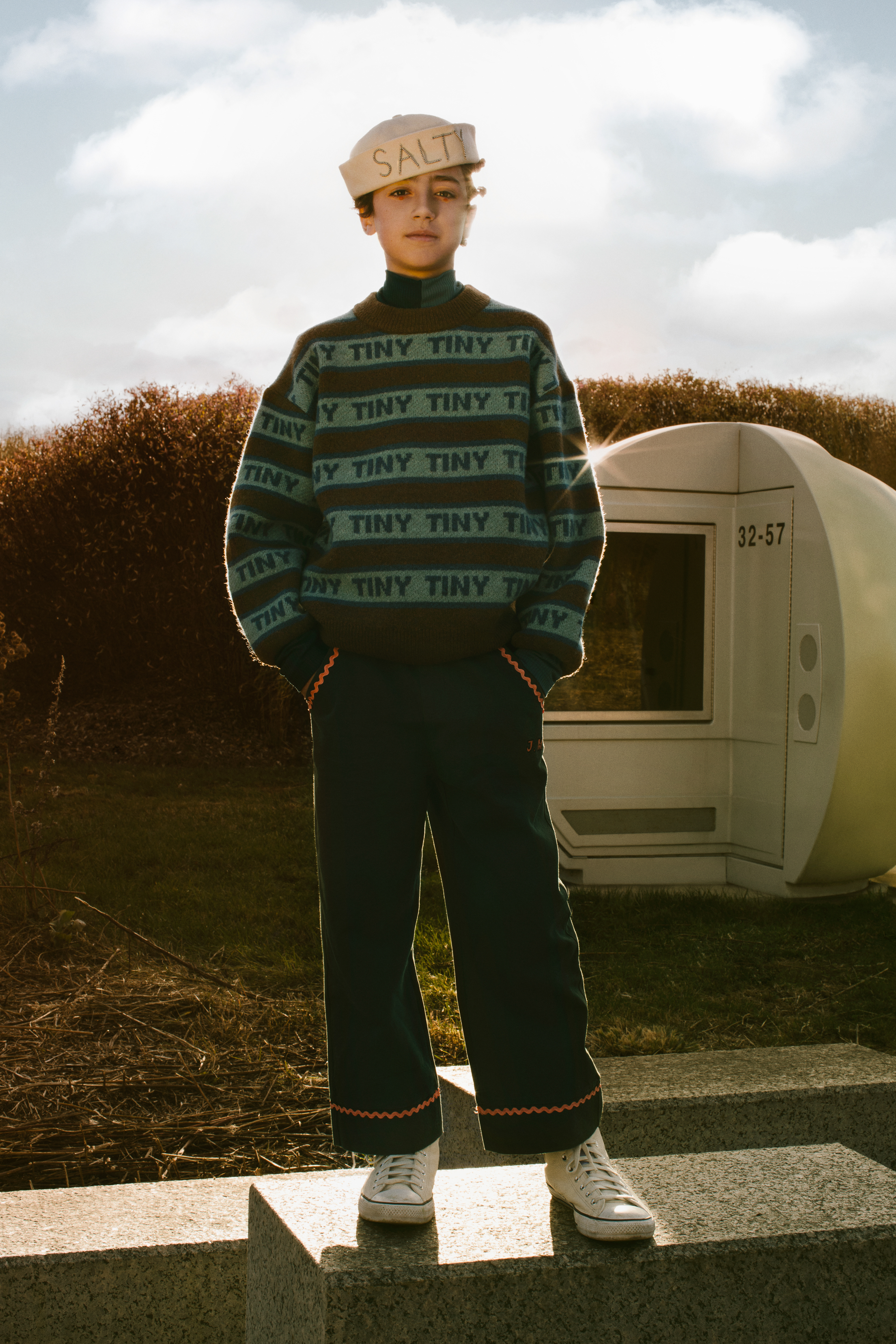 Evan: Sweatshirt Eve Gravel, Sweater Tiny, Les Petits Mosüs, Pants Jelly Malow, Les Petits Mosüs, Hat Heirloom, Shoes Converse