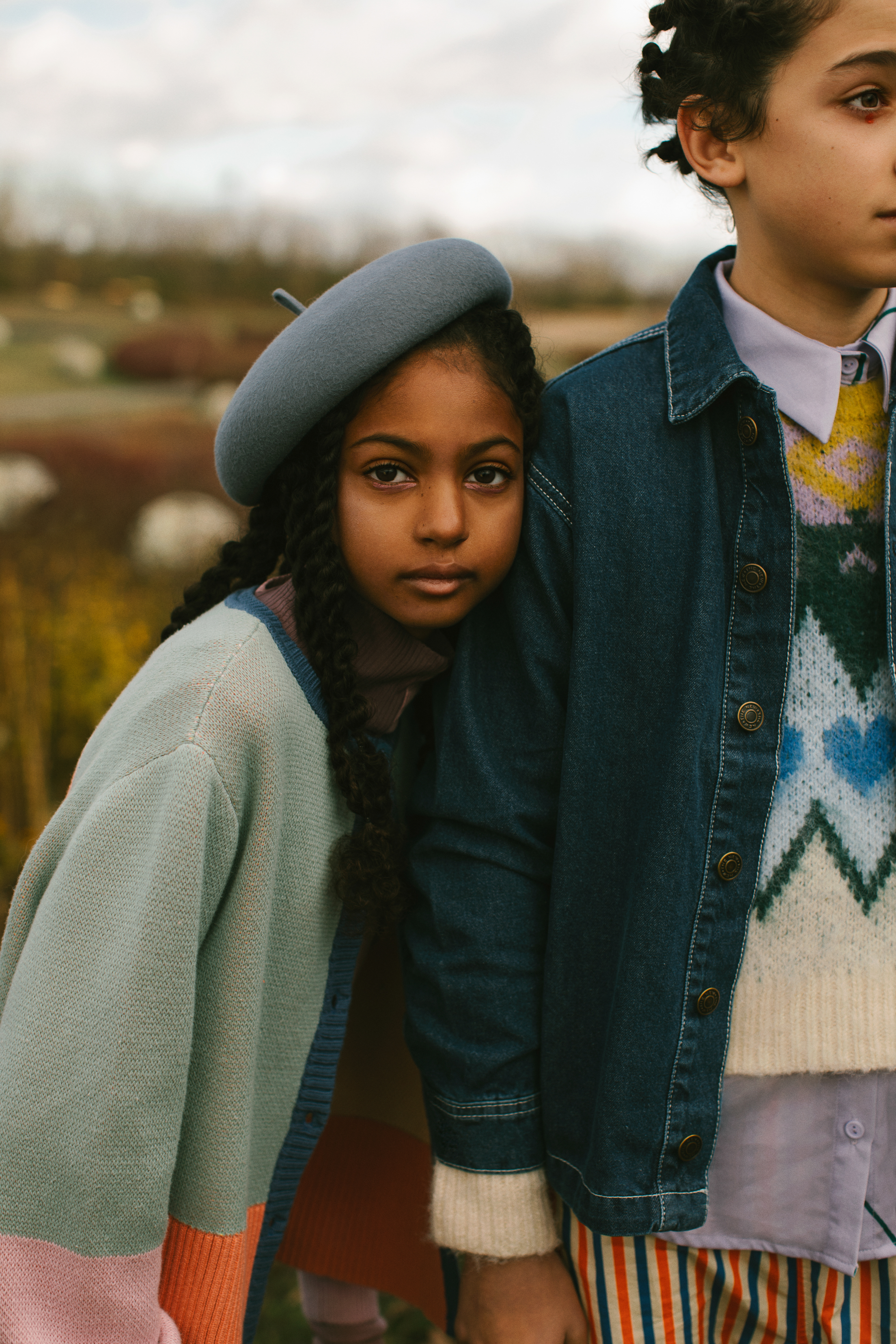 Evan: Shirt Eve Gravel, Sweater Molo, Billie Le Kid, Pants Tiny, Les Petits Mosüs, Denim Coat The New, Billie Le Kid